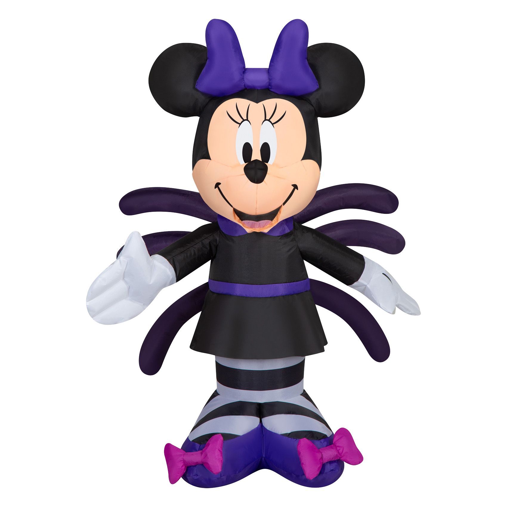 Disney fans will love this Halloween Airblown Inflatable Minnie Mouse in a monster costume! Wearing a black dress with arms coming out of the back, striped leggings, and purple shoes, she makes a spooktacular addition to your outdoor Halloween decorations. Setup is super simple. Just plug it in, stake it down, and watch the magic unfold. Display this Disney Halloween inflatable as a standalone or combine it with other Airblown Inflatables to create a custom scene.