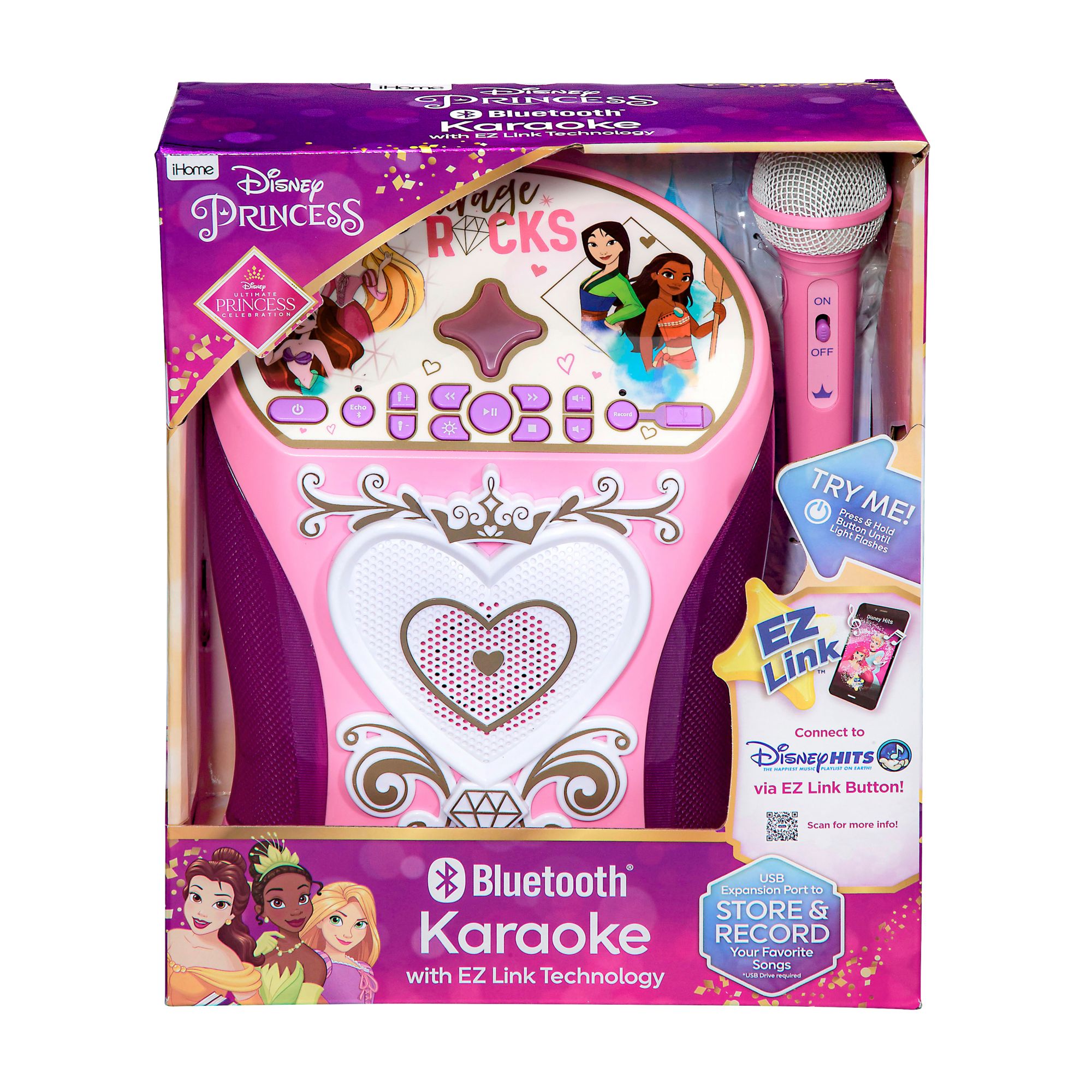 Stream and sing along to all your favorite Disney music when you connect this karaoke machine to any Bluetooth-enabled device, including smartphones, tablets, and computers. Use the included wired microphone to perform your favorite songs, then record and save your "hit single" onto a USB drive (not included). Download the EZ Link app from the App Store or Google Play and install it on your Bluetooth device, then follow the prompts to select streaming service. Once activated, you can press the EZ Link Button on your karaoke machine and use your microphone to seamlessly connect and play a great collection of Disney hits.