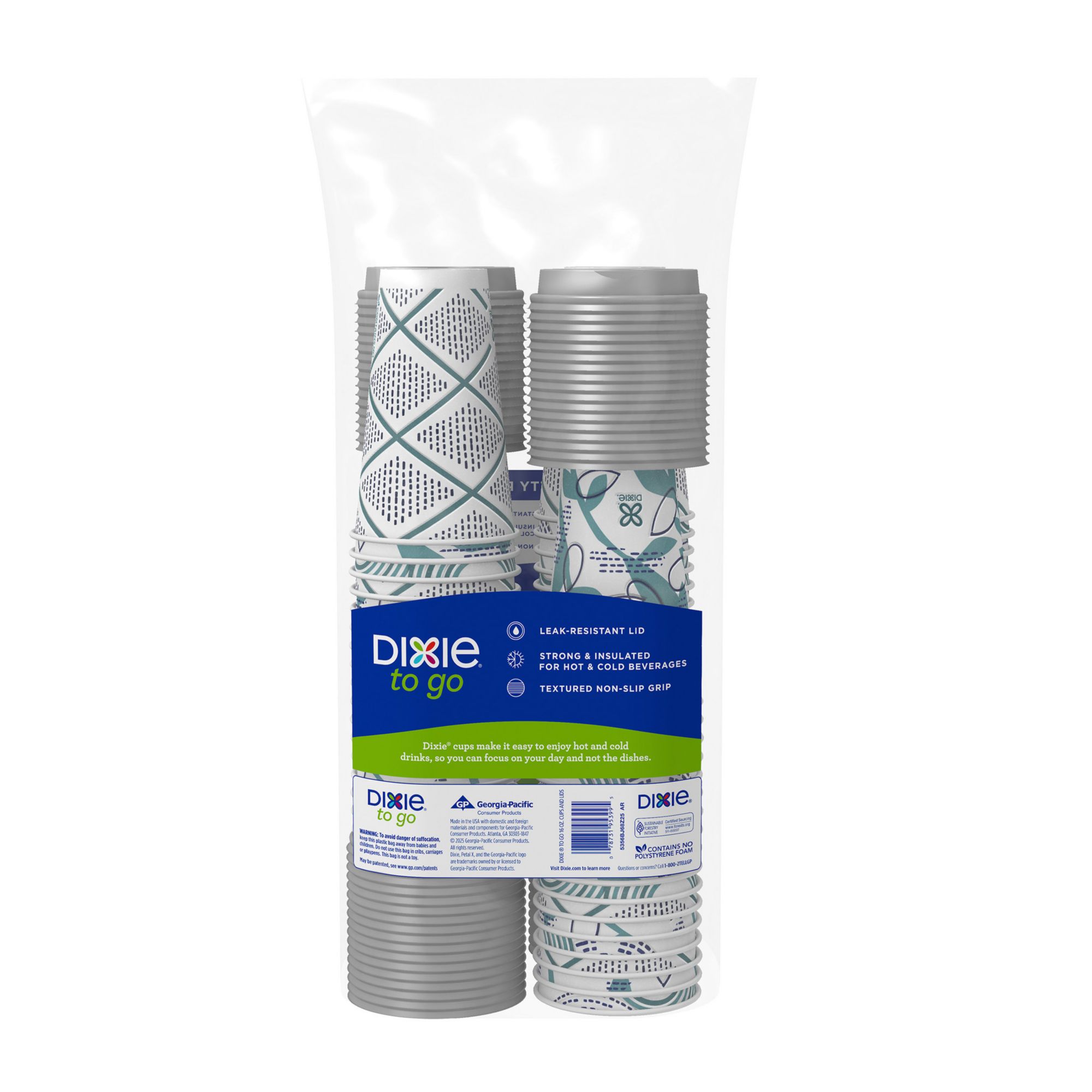 The Dixie PerfecTouch 16 Oz. Hot/Cold Cups make it simple to relax with a tasty hot or cold drink in hand. An insulated design helps keep your beverage of choice at its optimal temperature, while the multicolor Coffee Haze pattern delivers a charming look. These disposable cups are compatible with most single-serve coffee makers for additional convenience.