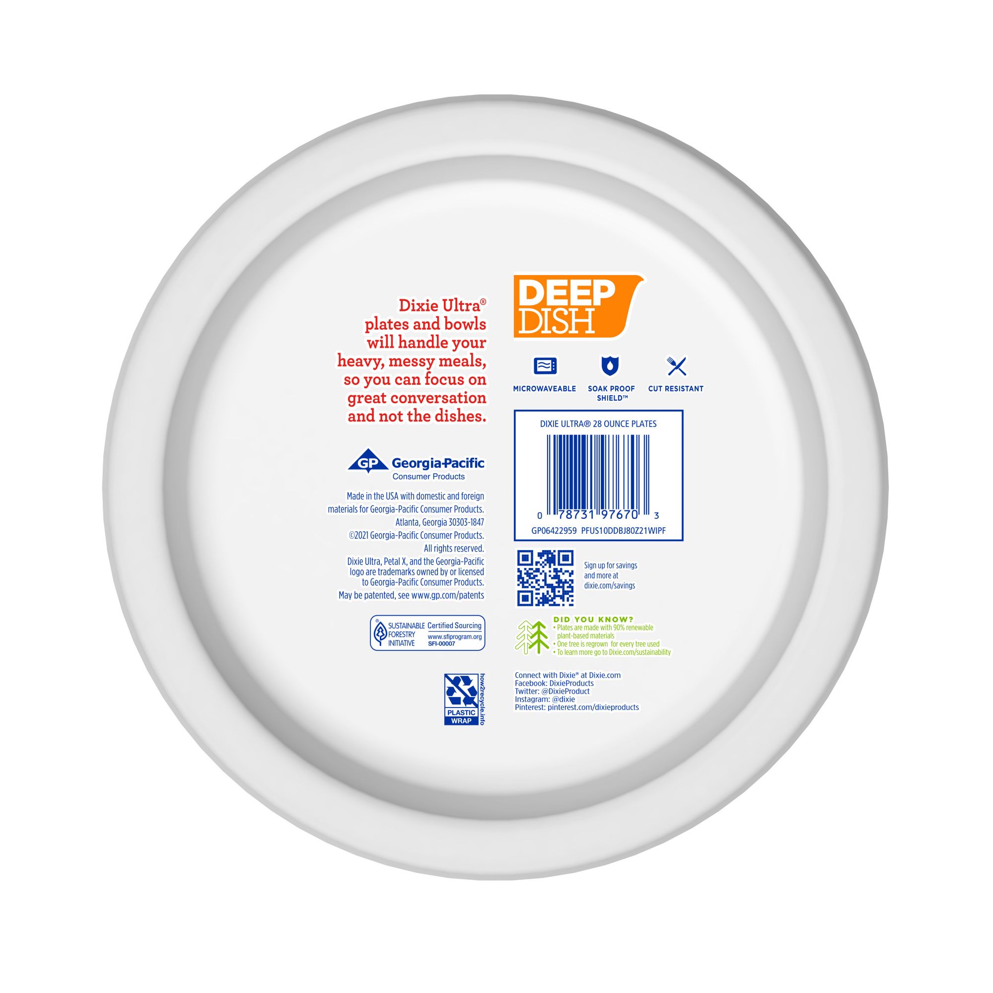 - Dixie Ultra Deep Dish Plates with 5-layers of added strength have a Bowl-Like Rim to handle heavy, messy, and saucy meals