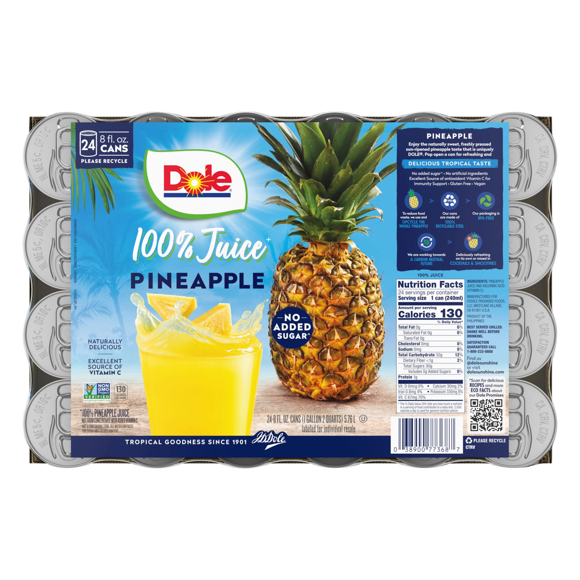 Refreshing and nutritious Dole 100% Pineapple Juice - this tropical fruit juice is packed with an easy open can ensuring freshness making it enjoyable at any time. It is rich in Vitamin C, providing a nutritious beverage option that is tasty and beneficial to your health. With no added sugar, you can savor the natural sweetness of pineapple in every sip. Dole 100% Pineapple Juice is made with authentic fruit goodness. It is made with real fruit, capturing the authentic taste of delicious pineapple, making it ideal to enjoy on its own. It is also perfect for enhancing the flavor of cocktails, mocktails or smoothies. With Dole, you can always have a piece of the tropics at your fingertips. It is convenient, perfect at home, at work or on the go. You can easily grab a can for a quick and refreshing tropical treat. Enjoy the goodness of Dole 100% Pineapple Juice today.