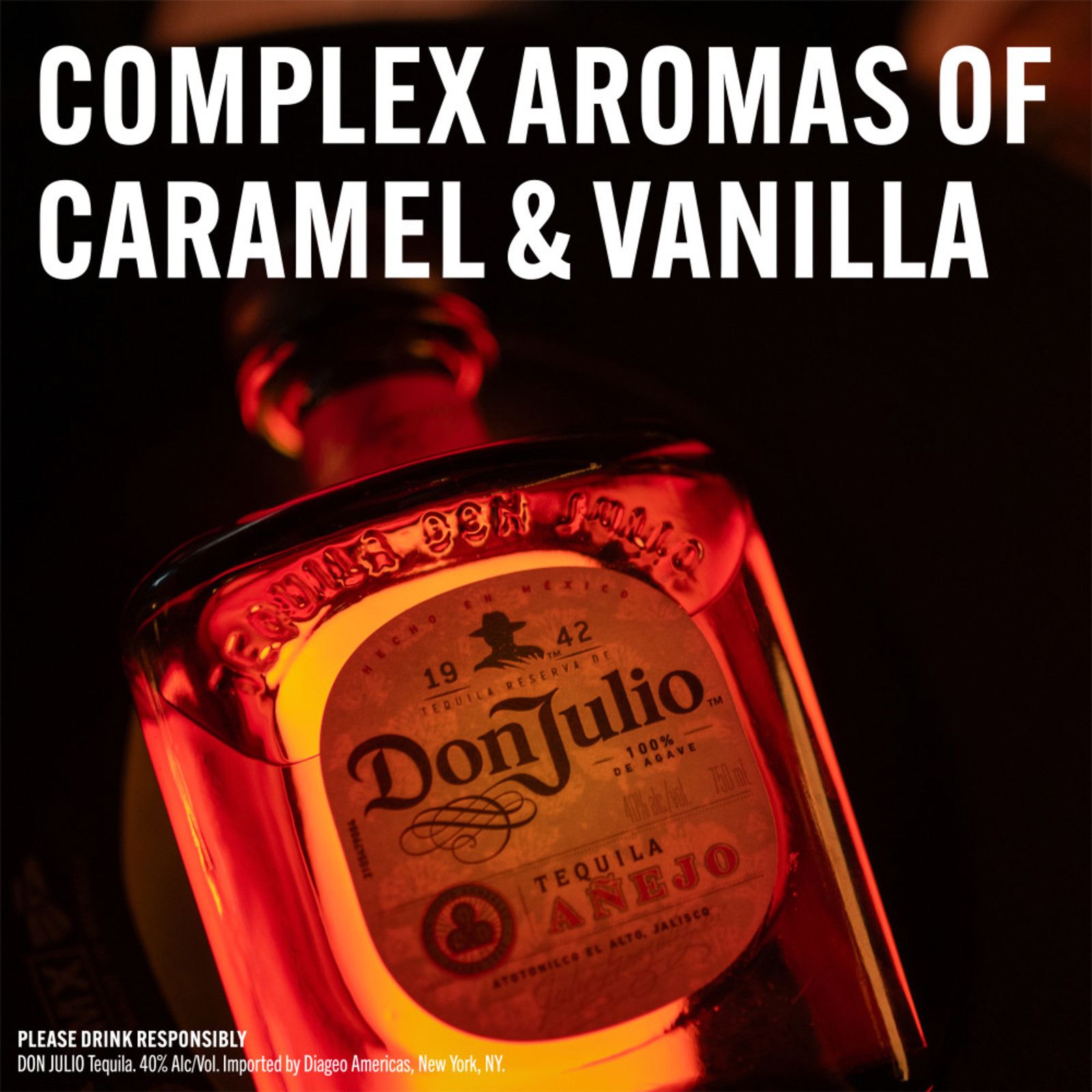Don Julio Anejo Tequila is a testament to the craft of making a superior tasting, aged tequila. Rich, distinctive and wonderfully complex, its flavor strikes the perfect balance between agave and hints of butterscotch and honey with a bright and lightly spiced finish. Aged for 18 months and containing 40 percent alcohol by volume, this premium tequila is made with 100% Blue Weber Agave and is ready for any celebration. Don Julio was named One of the Top Trending Tequilas at the 2020 Drinks International awards. Simply serve neat in a snifter or on the rocks for a classic and simple drink. Includes one 80 proof 750 mL bottle of Anejo Tequila. Please drink responsibly.