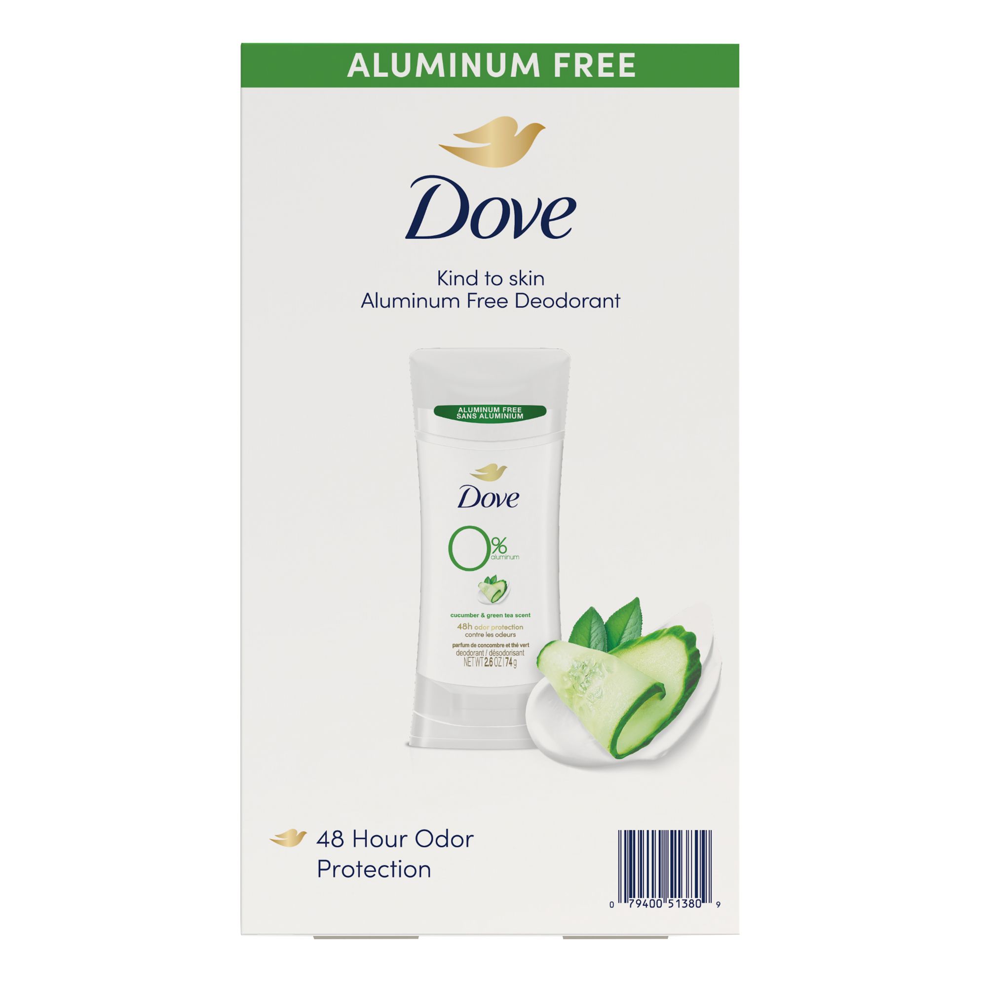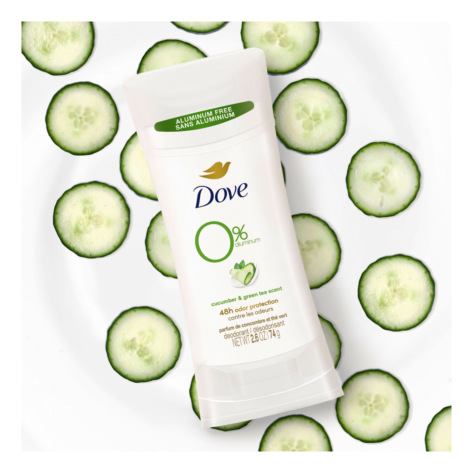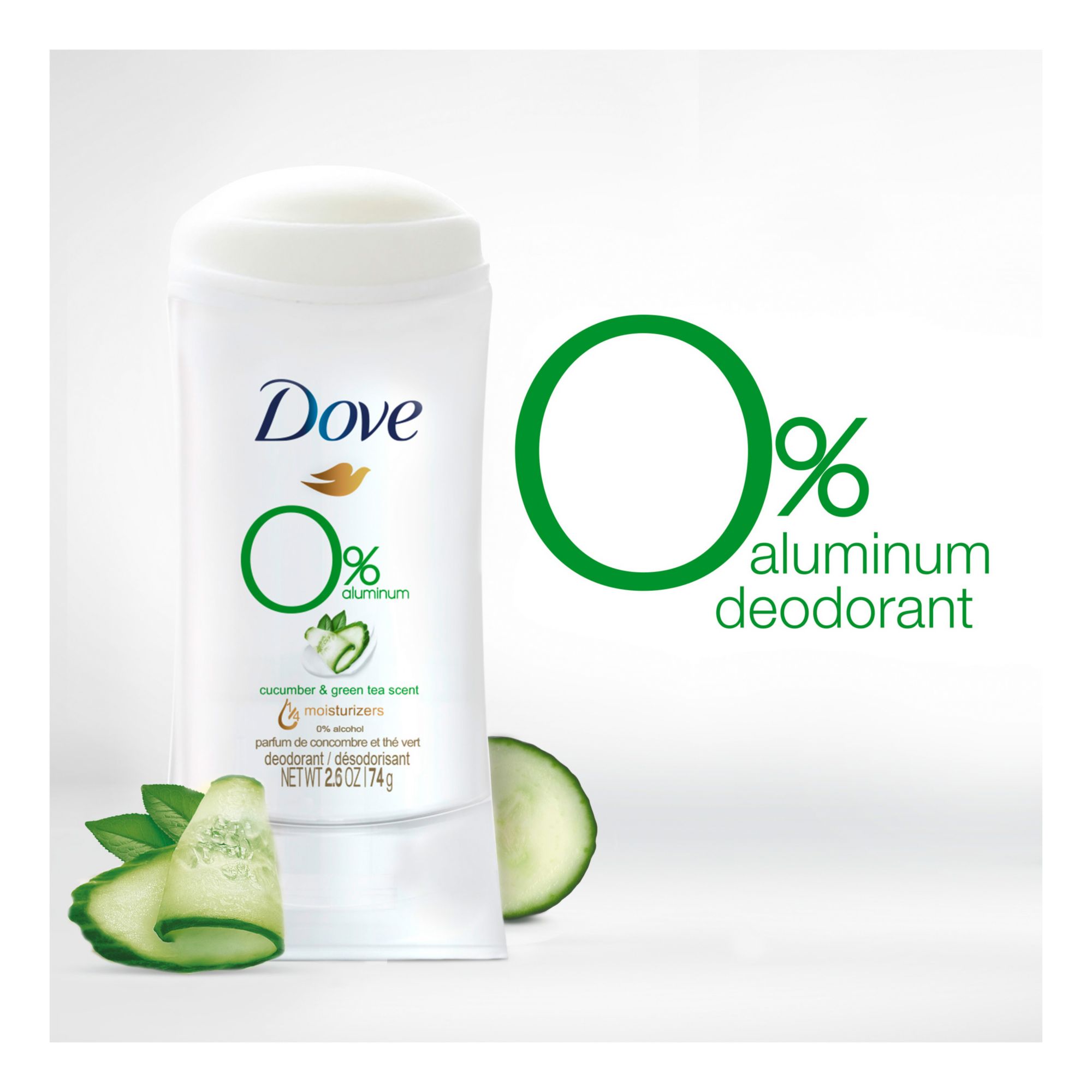 To keep your underarms feeling their best every day, they need the same love and care you give the rest of your body. Dove 0% Aluminum Deodorant Stick Cucumber and Green Tea is the most skin-kind aluminum-free deodorant, with no compromise on odor protection. So, when you use this 0% alcohol (ethanol) deodorant formula, you always get the protection you’d expect, and the care your delicate underarms deserve from an aluminum free deodorant. Enriched with 1/4 moisturizers, this gentle, non-irritating deodorant without aluminum works to give you soft, smooth underarms by caring for your skin. In addition to underarm care, Dove 0% aluminum deodorant provides effective odor protection. Designed to protect your underarms from odor for up to 48-hours, one application of this 0% alcohol (ethanol) deodorant formula will help you get on with your day worry free. Smelling fresh and clean all day is a great way to boost your confidence. Infused with a refreshing cucumber and green tea scent, this deodorant for women gives long-lasting freshness with every application, leaving you feeling and smelling great, no matter what the day brings. To get the most out of your deodorant stick without aluminum, swipe evenly onto clean, dry skin after showering and enjoy fresh-smelling underarms. Made to be small and compact, this aluminum-free deodorant stick is ideal when you’re on-the-go. Just pop into purses and desk drawers for easy access whenever you’re in need of a quick refresh.