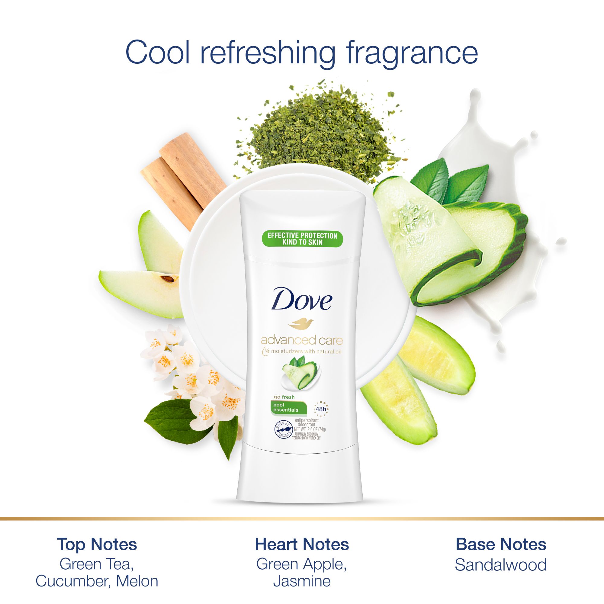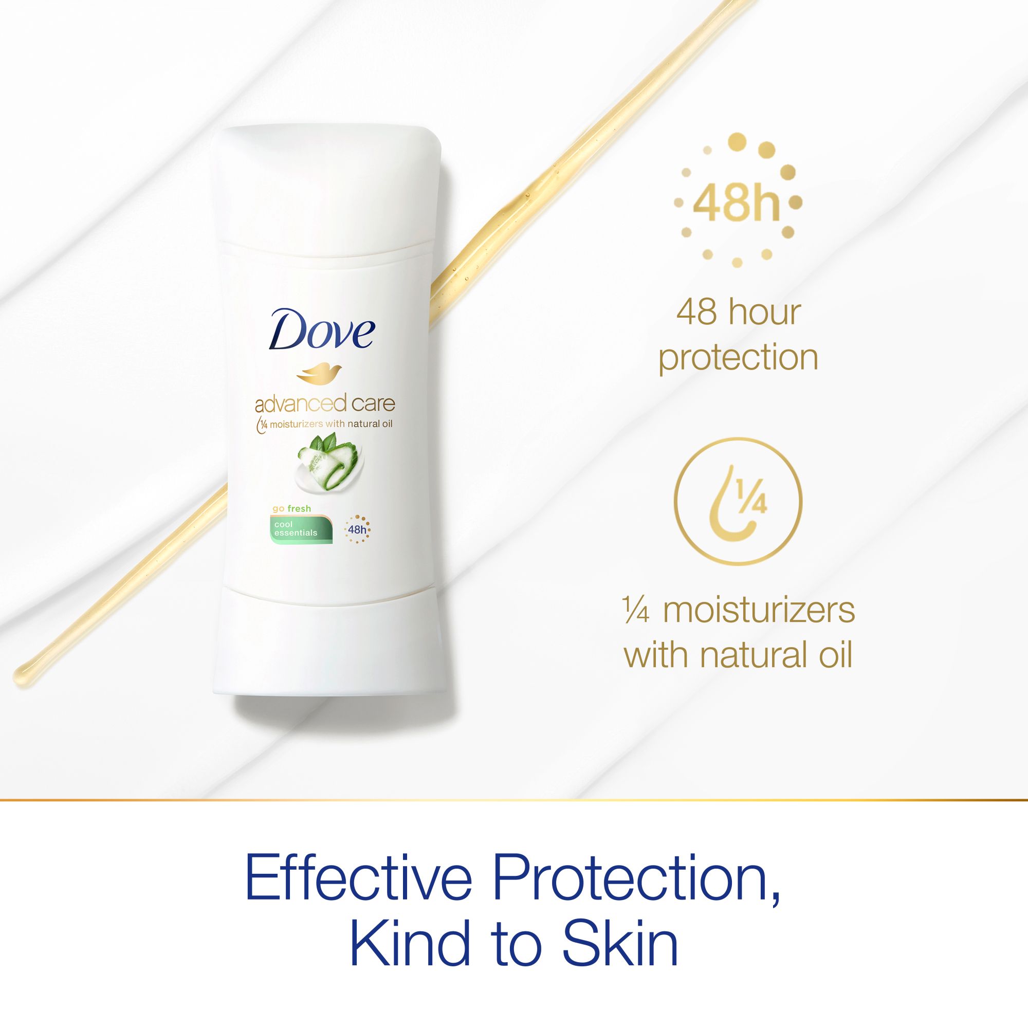 Dove Advanced Care combines the reassurance of up to 48 hours of antiperspirant protection with the refreshing scent of cucumber and green tea. It's a women's deodorant that keeps underarm wetness at bay for up to 48 hours, the 0% alcohol (ethanol) formula helps delicate underarm skin to recover from the irritation that regular shaving can cause. The formula also includes Dove NutriumMoisture and unique ¼ moisturizers, for smooth underarms that look and feel softer with regular use. If you’ve been wondering about the best deodorant to get soft armpits, choose Dove Cool Essentials for touchably soft, smooth underarm skin and a scent to awaken your senses in the morning. To use, apply this antiperspirant deodorant to dry skin after showering or bathing and enjoy fresh and comfortably dry skin all day long. For best results, make sure your underarm skin is cool and completely dry before applying, and give each underarm a few swipes for even coverage. At Dove, the vision is of a world where beauty is a source of confidence, and not anxiety. So, we are on a mission to help the next generation of women develop a positive relationship with the way they look helping them raise their self-esteem and realize their full potential.