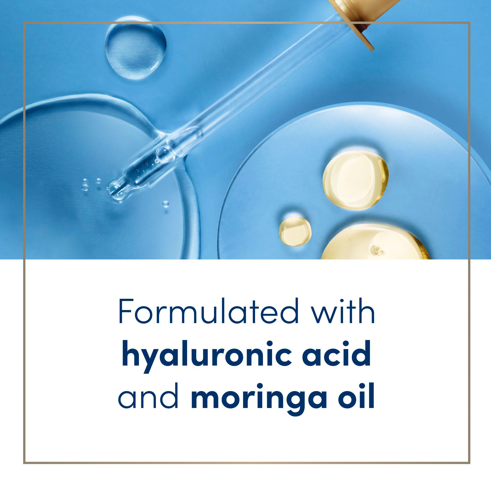 Hyaluronic acid and moringa oil drenches skin in a surge of ultra moisture