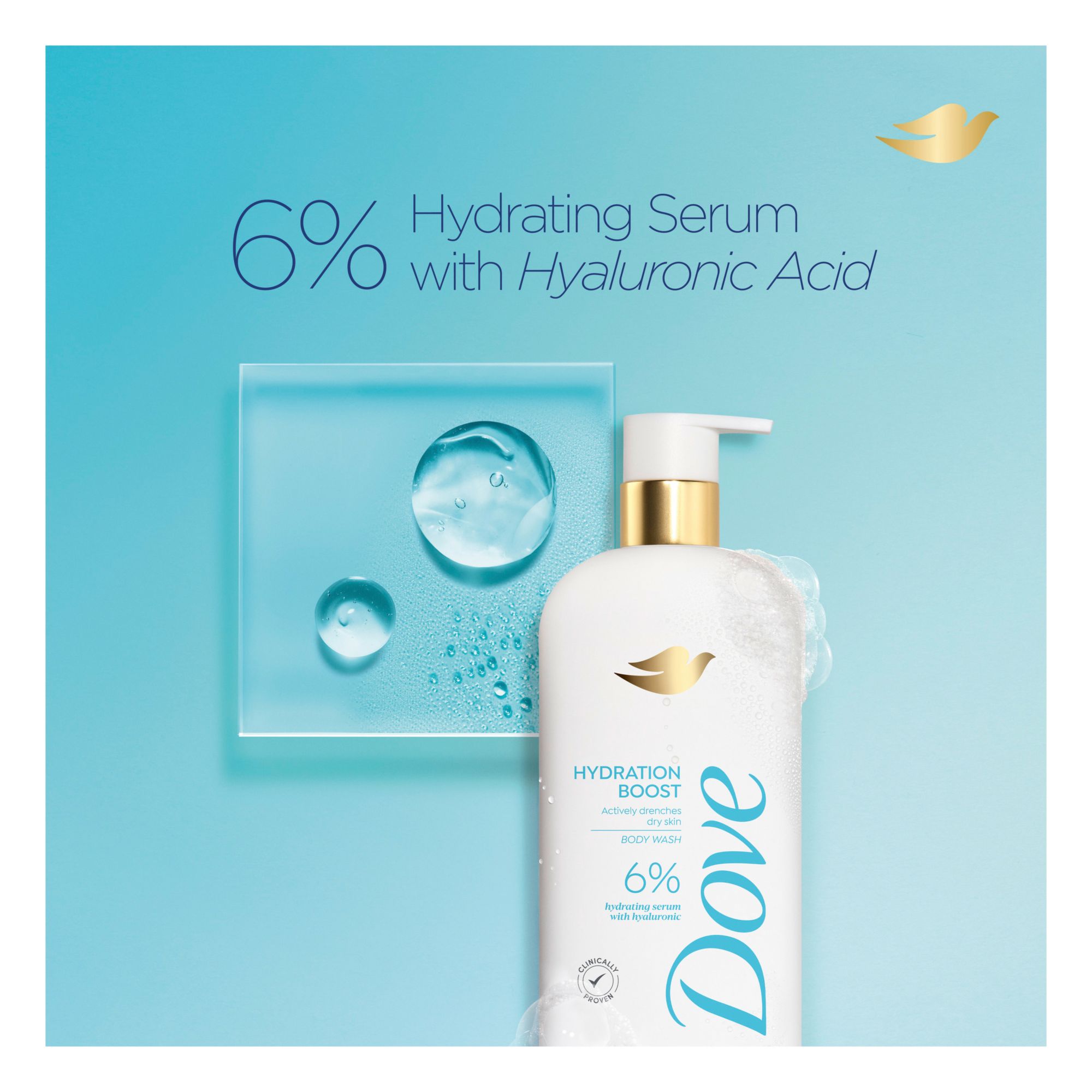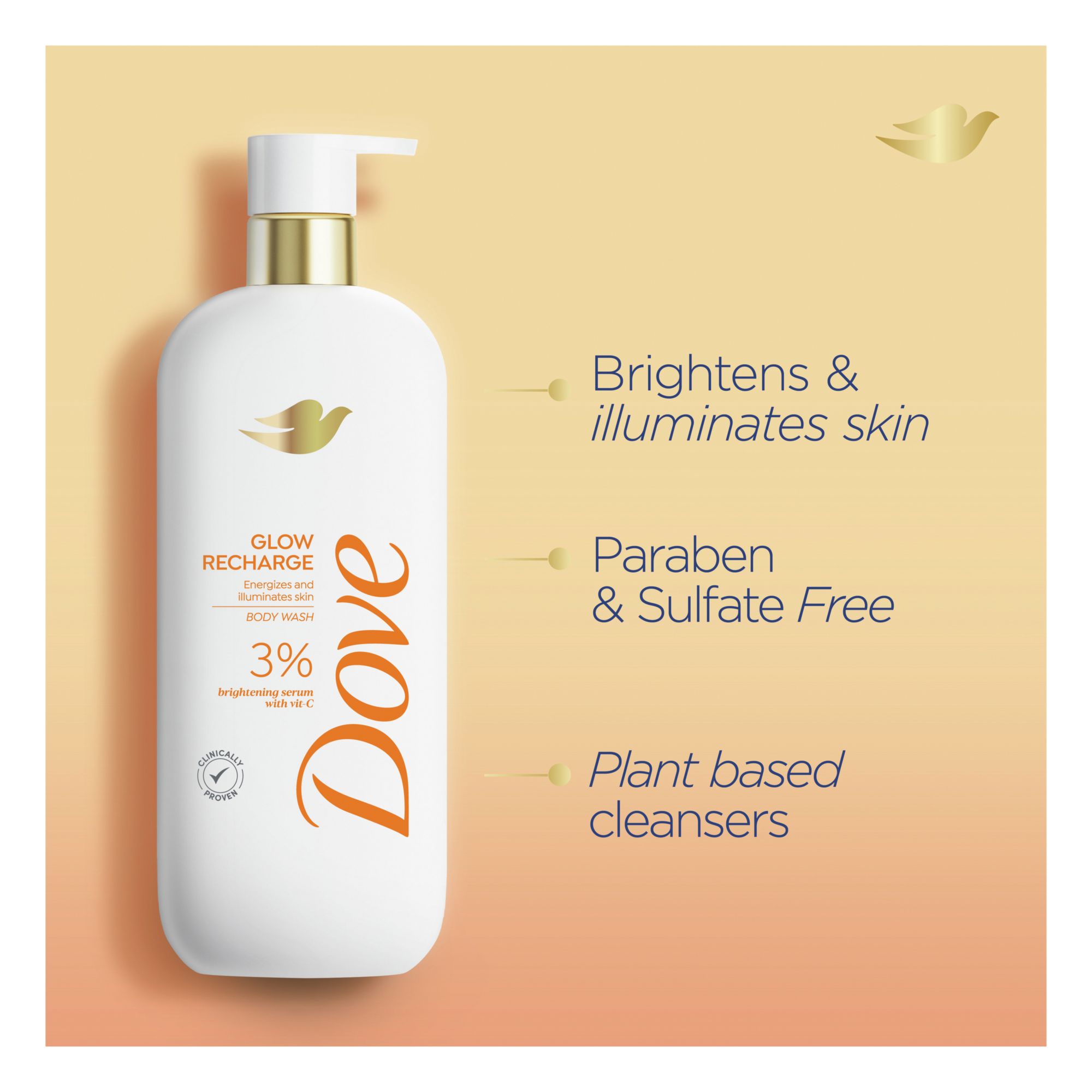 New Dove Serum Shower Collection is infused with active skin care ingredients to supercharge your body care routine. Quench thirsty skin with hydrating serum and hyaluronic acid, help prevent acne with acne clearing salicylic acid treatment, or recharge skin’s glow with brightening serum and vitamin C. Dove Hydration Boost Serum Body Wash for dehydrated skin, with 6% hydrating serum and hyaluronic acid, instantly takes skin from dry to dewy for 24-hours of silky softness. This creamy body wash transforms into velvety foam, filling your shower with notes of dewy freshness and soft florals. Dove Glow Recharge Body Wash, formulated with a 3% brightening serum with exfoliating minerals and Vitamin C, takes your skin from dull and uneven to illuminated and refined. This exfoliating gel body wash transforms into a creamy lather, filling your shower with notes of tropical fruit and sweet berries. Dove is the #1 Dermatologist recommended body wash brand. This cleanser is made with naturally-derived gentle skin cleansers, no sulfates or parabens and is PETA-certified vegan.