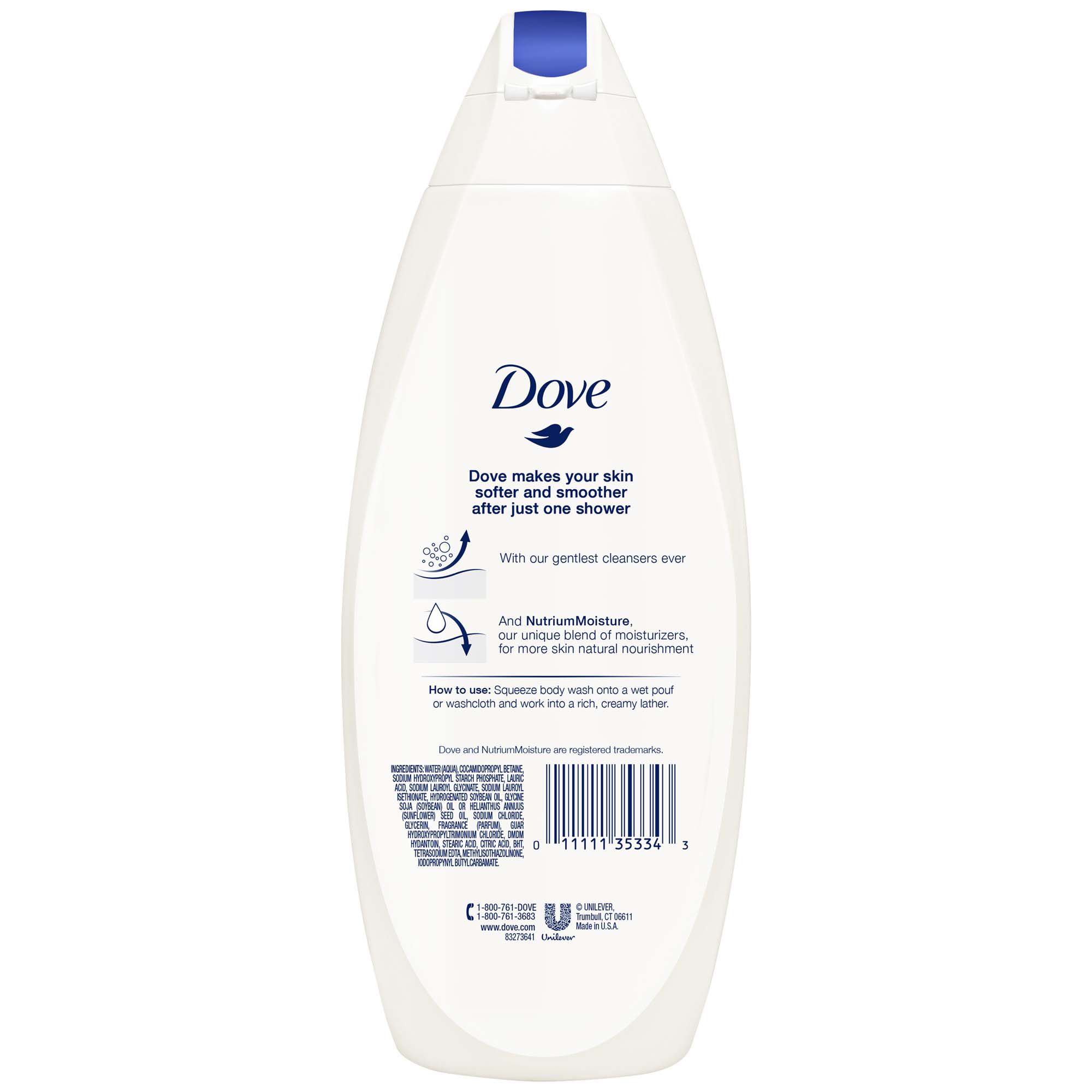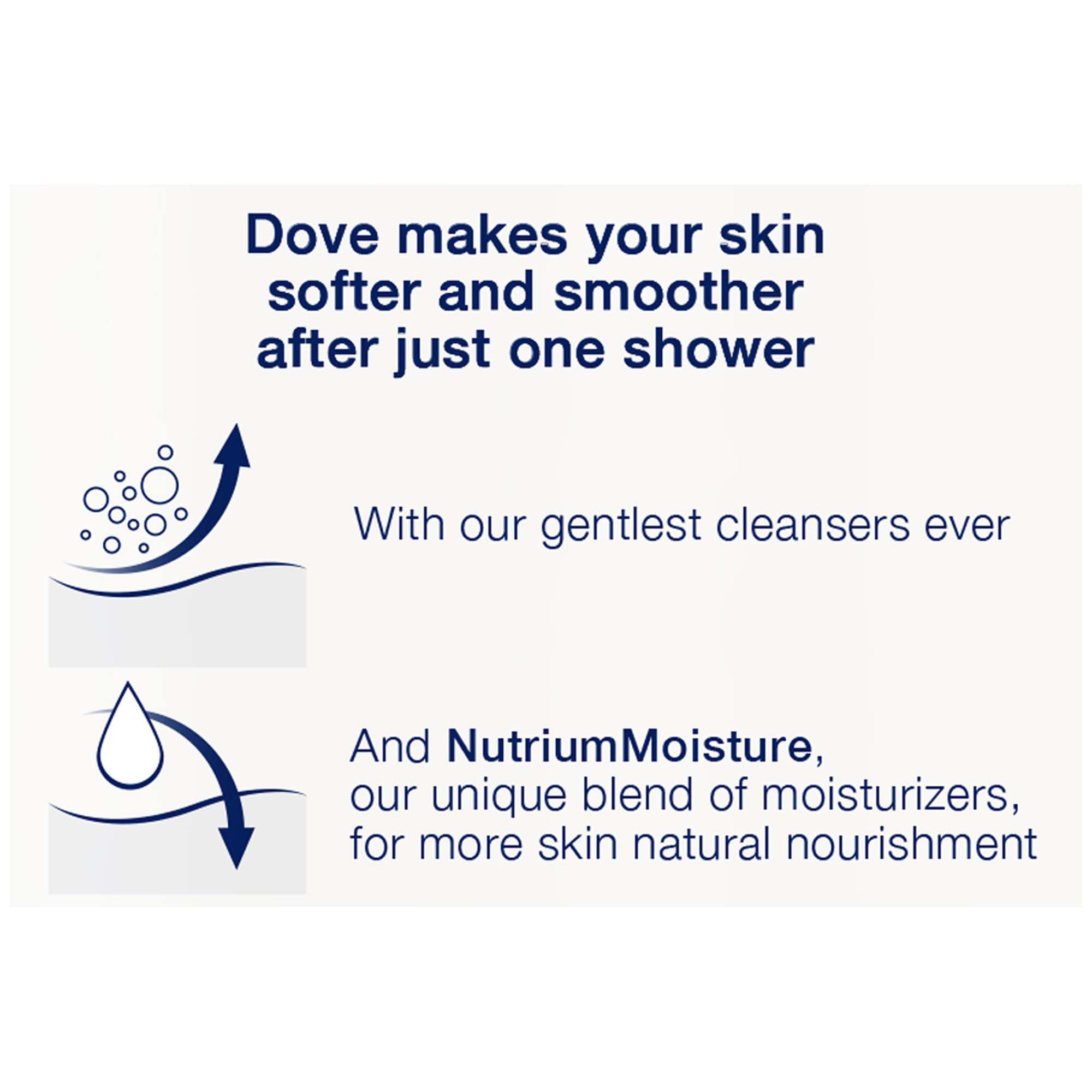 Caring for yourself never felt so good. Dove Deep Moisture Body Wash with NutriumMoisture features 100 percent natural moisturizers that can absorb completely to nourish skin deep down. Plus, an improved formula gives your skin the proven best care: the gentlest cleansers ever, a rich lather and a clean rinse to leave your skin feeling soft and smooth. Dove makes your skin softer and smoother after just one shower* with NutriumMoisture for more natural nourishment than most body washes.