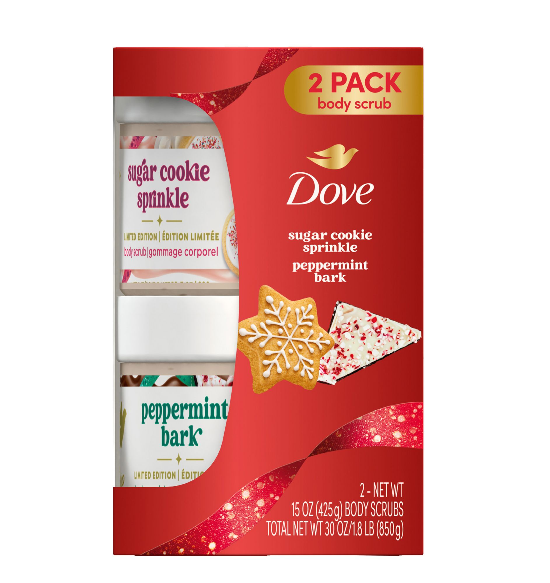 Celebrate the season with a shower experience that’s as joyful and indulgent as the holidays themselves. The Dove Holiday Treats Body Scrub Variety Pack brings together two festive favorites—Sugar Cookie Sprinkle and Peppermint Bark—designed to transform your daily routine into a moment of delicious self-care and seasonal delight. Let the Sugar Cookie Sprinkle Body Scrub wrap you in the cozy, nostalgic scent of freshly baked holiday treats. With its heartwarming blend of vanilla and nutty sweetness, this creamy scrub gently exfoliates and nourishes your skin, leaving it soft, smooth, and glowing with holiday cheer. It’s like stepping into a warm kitchen filled with the scent of cookies fresh from the oven—without the crumbs.