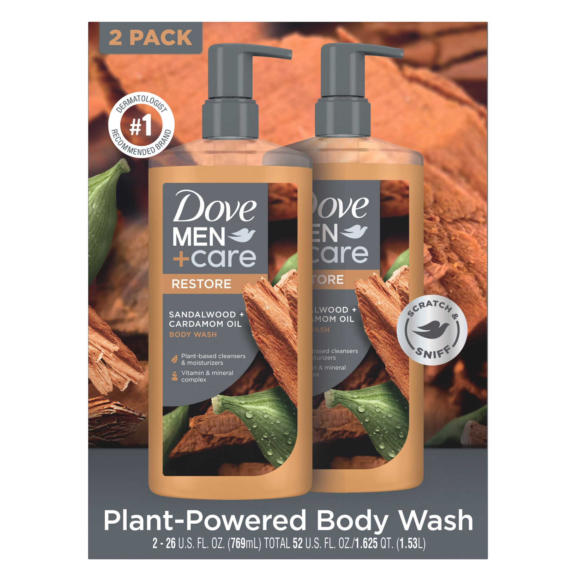 Dove Men+Care Sandalwood + Cardamom Oil Body Wash, 2 pk./26 fl. oz.