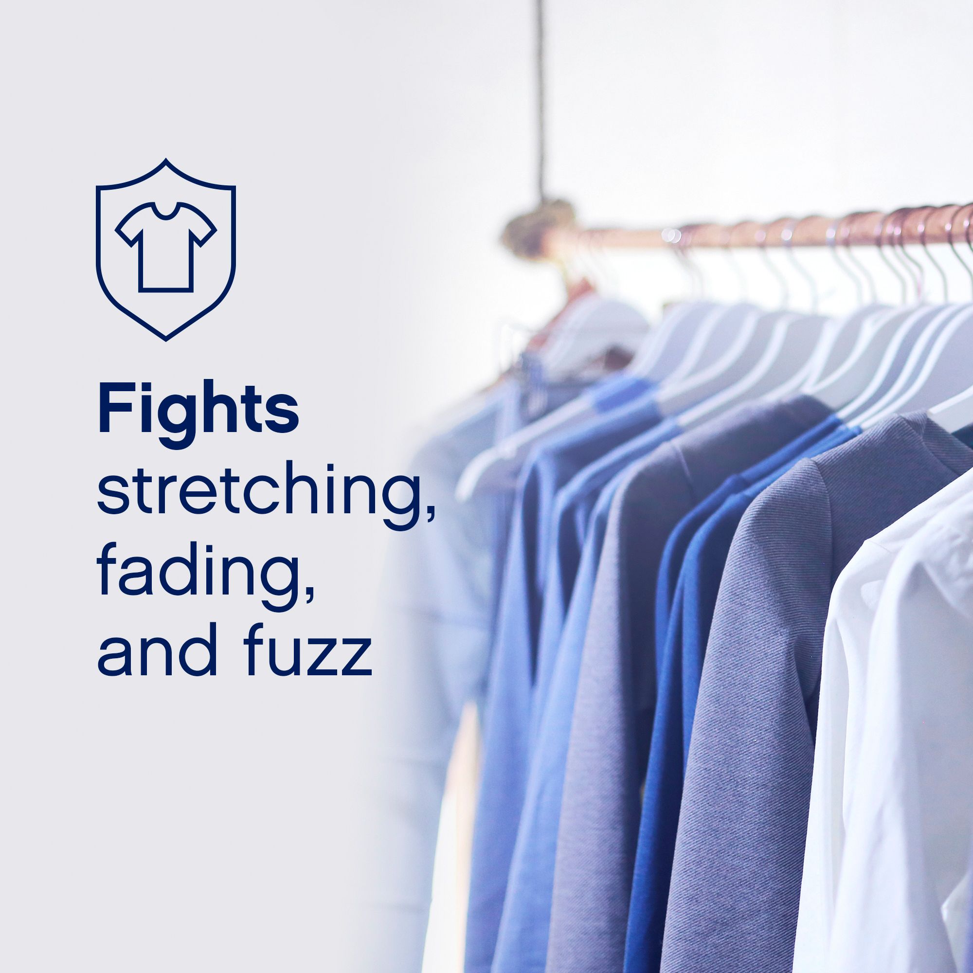 Conditions to help prevent stretching, fading, and fuzz Leaves long-lasting freshness Softens fabrics Reduces more wrinkles than detergent alone Compatible with HE machines