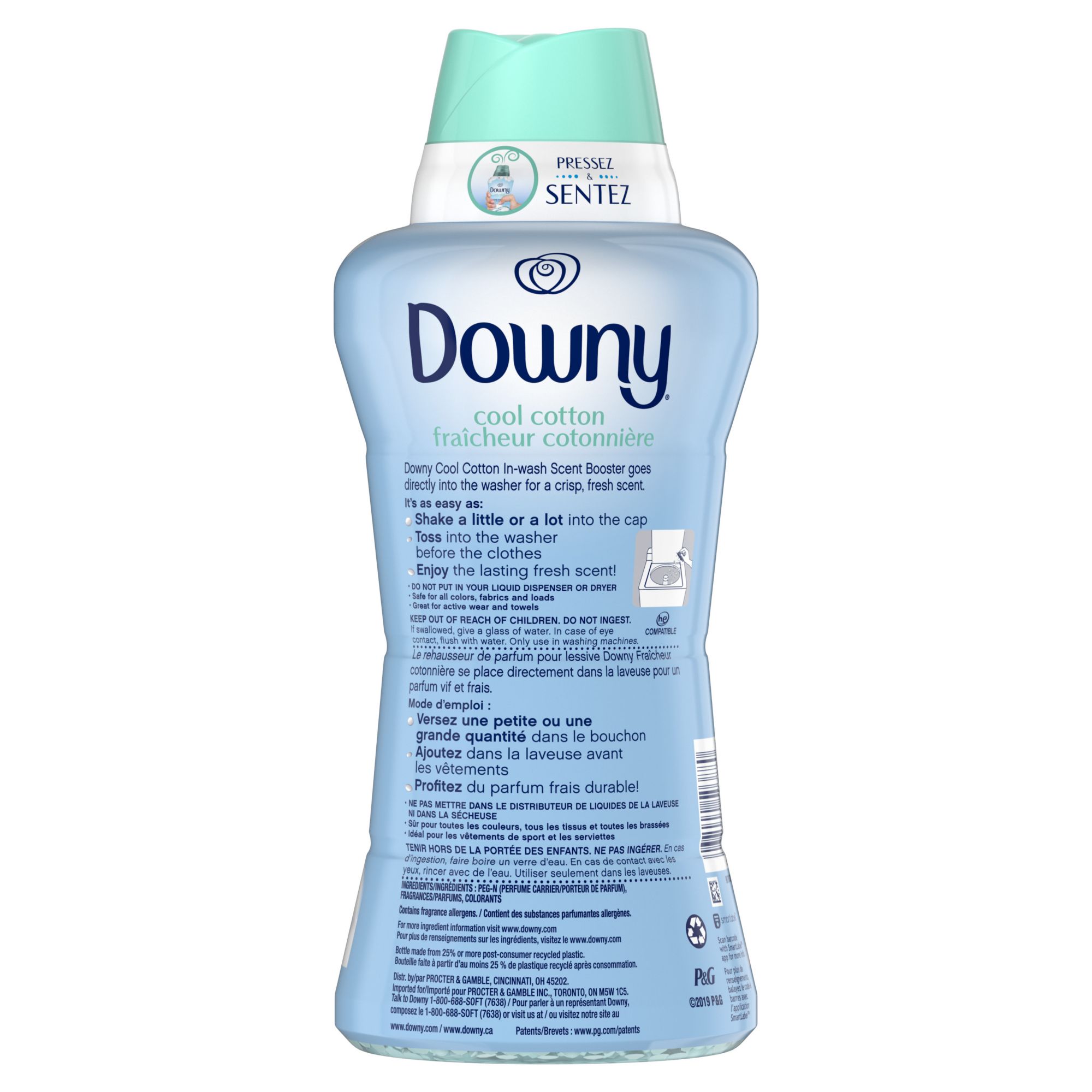 Downy in-wash scent beads give your clothes 12 weeks of long-lasting scent from wash until wear The crisp scent of cool cotton smells like a clean, refreshing breeze Easy to use: Just toss a capful into your machine before your clothes Pour in more for extra scent in your laundry Safe to use in all washing machines for lasting freshness with every load Complete your laundry routine with Downy cool cotton fabric softener and dryer sheets