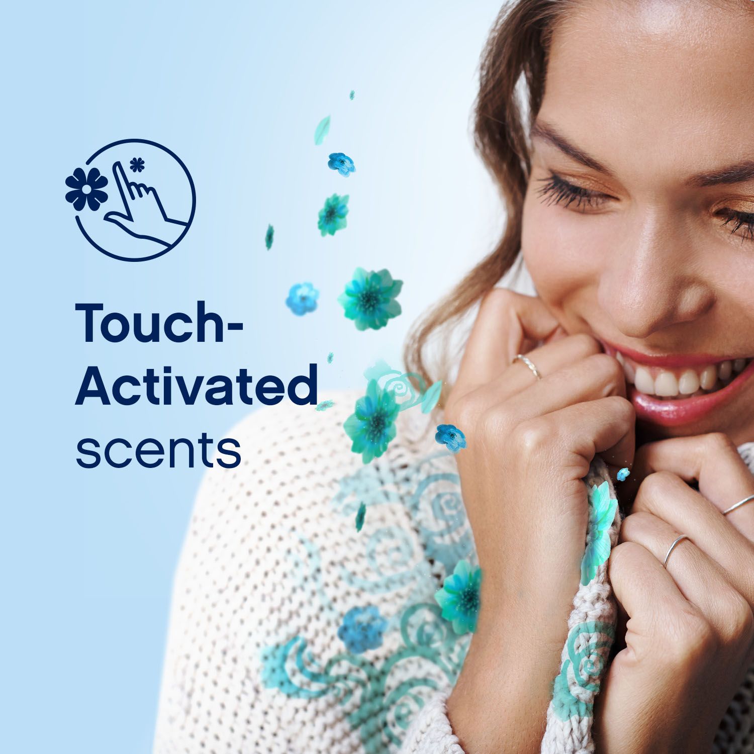 Touch-activated scent leaves long-lasting freshness Infuses fabrics with a botanical, watery-fresh scent Conditions clothes to help prevent stretching, fading and fuzz Keeps clothes looking newer, longer Compatible with HE machines Includes 115 fl. oz. liquid fabric conditioner
