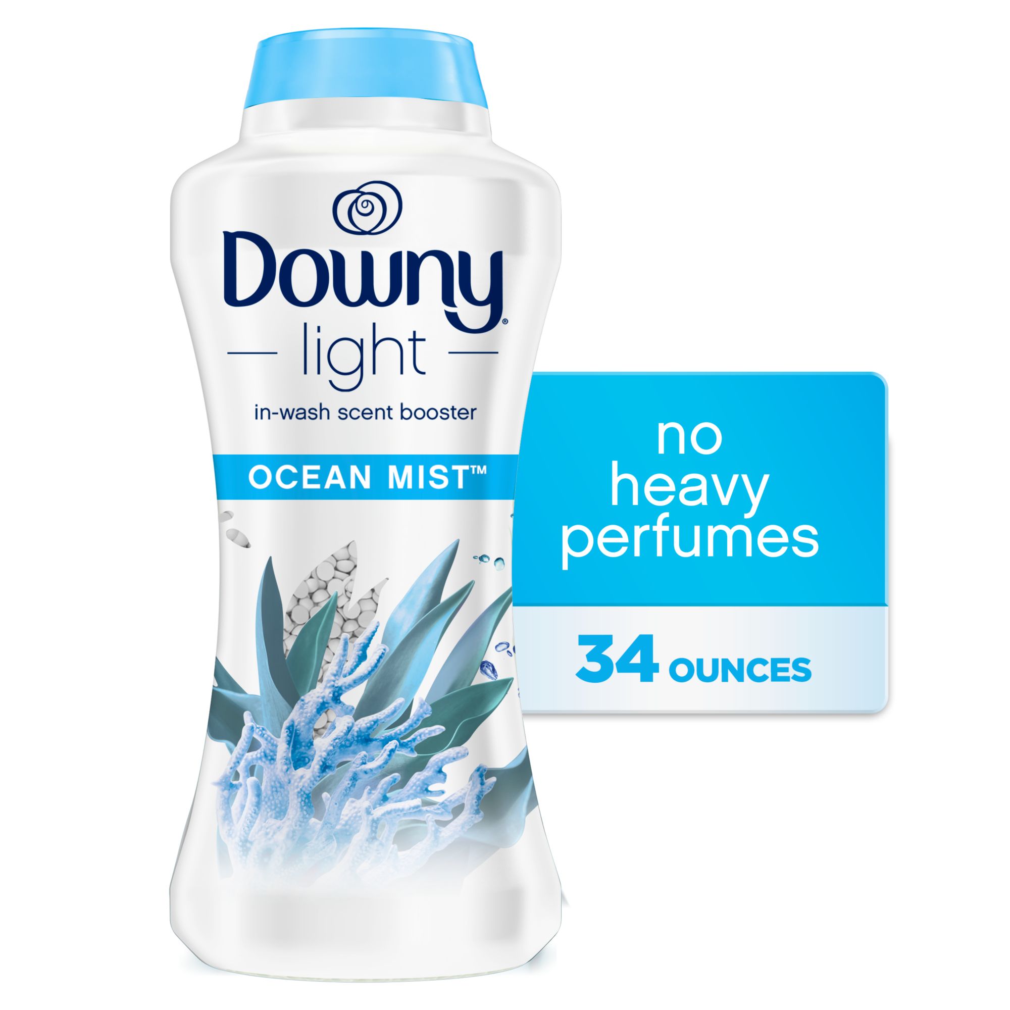 Includes 34 oz. bottle of Downy light laundry scent booster beads for washer, ocean mist, with no heavy perfumes