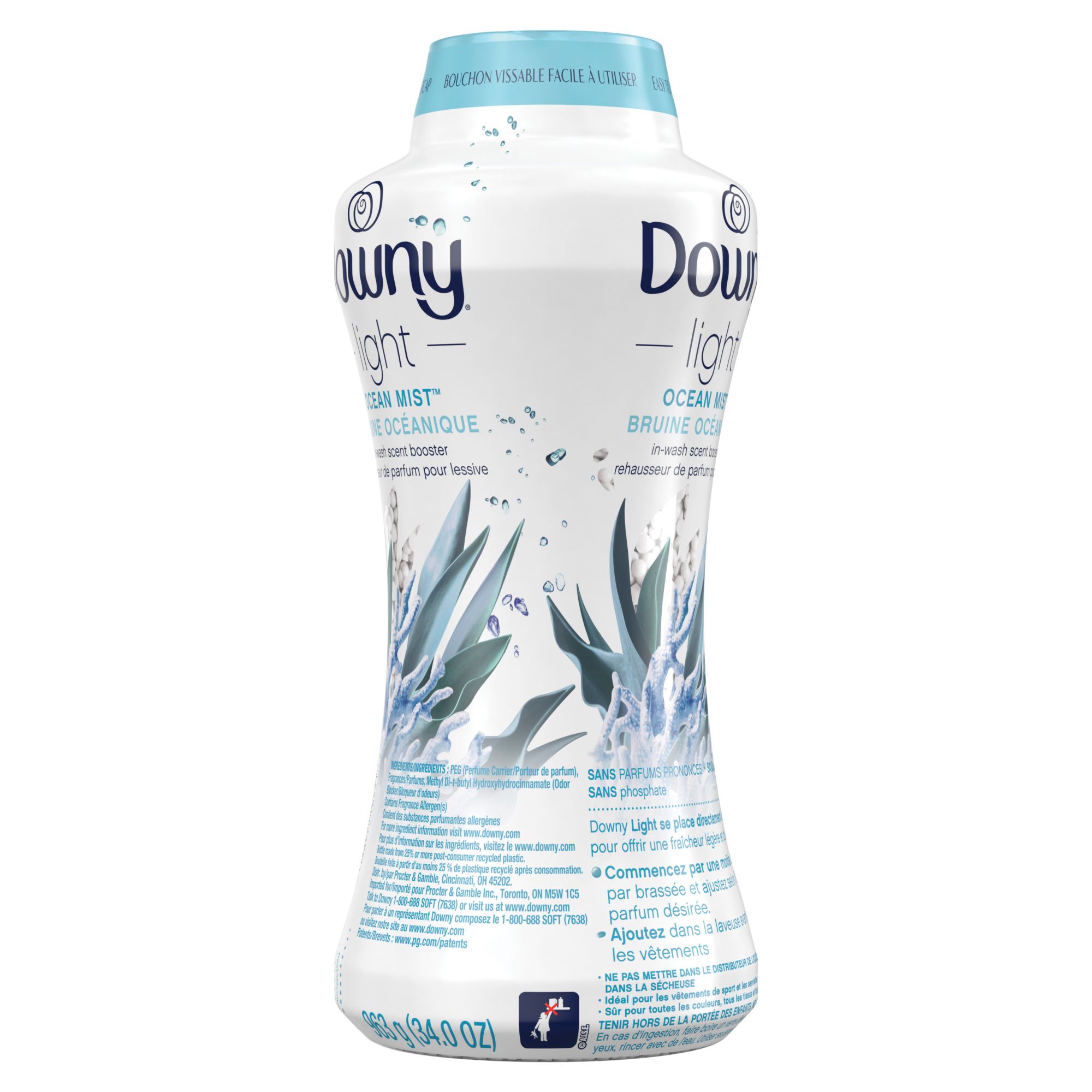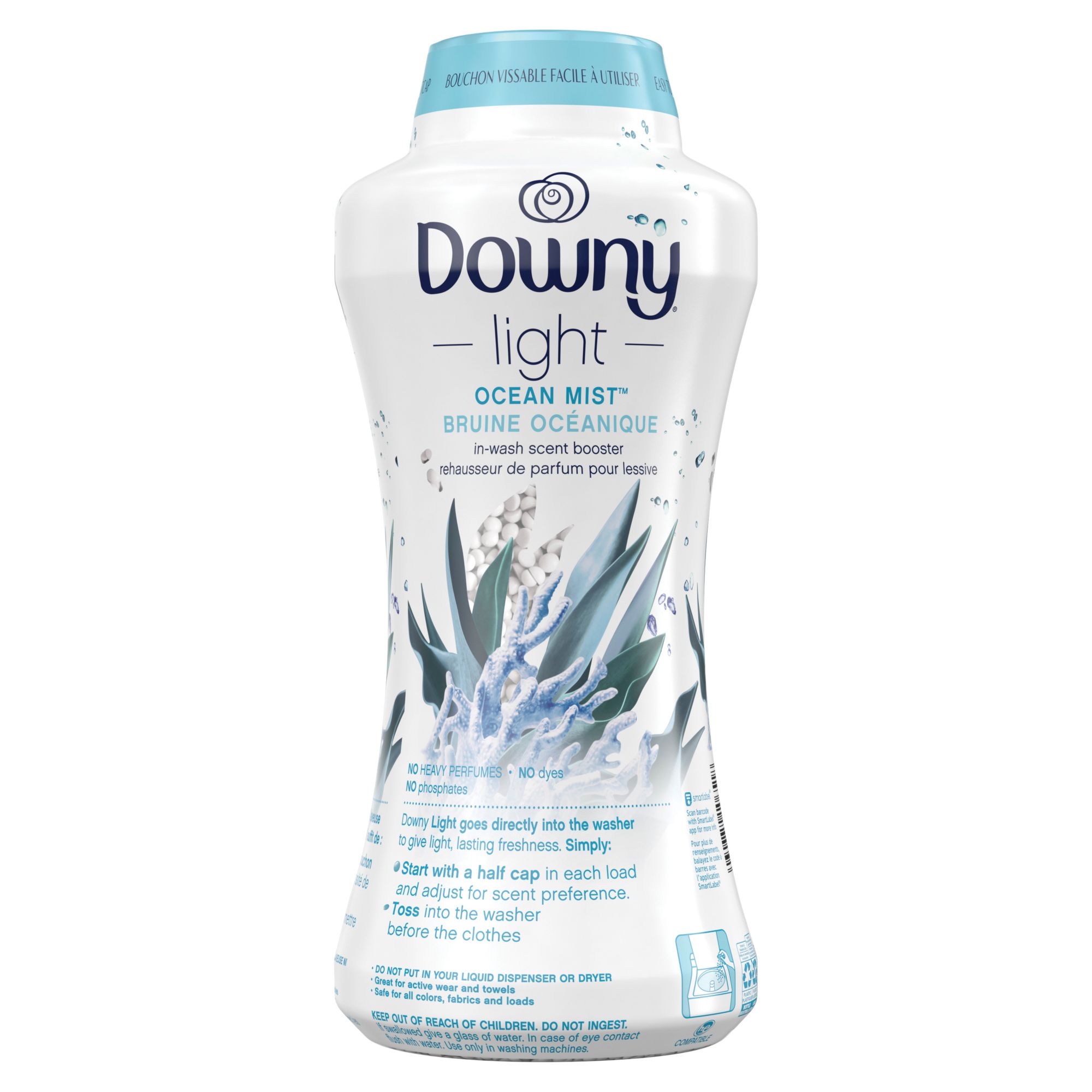 Includes 34 oz. bottle of Downy light laundry scent booster beads for washer, ocean mist, with no heavy perfumes