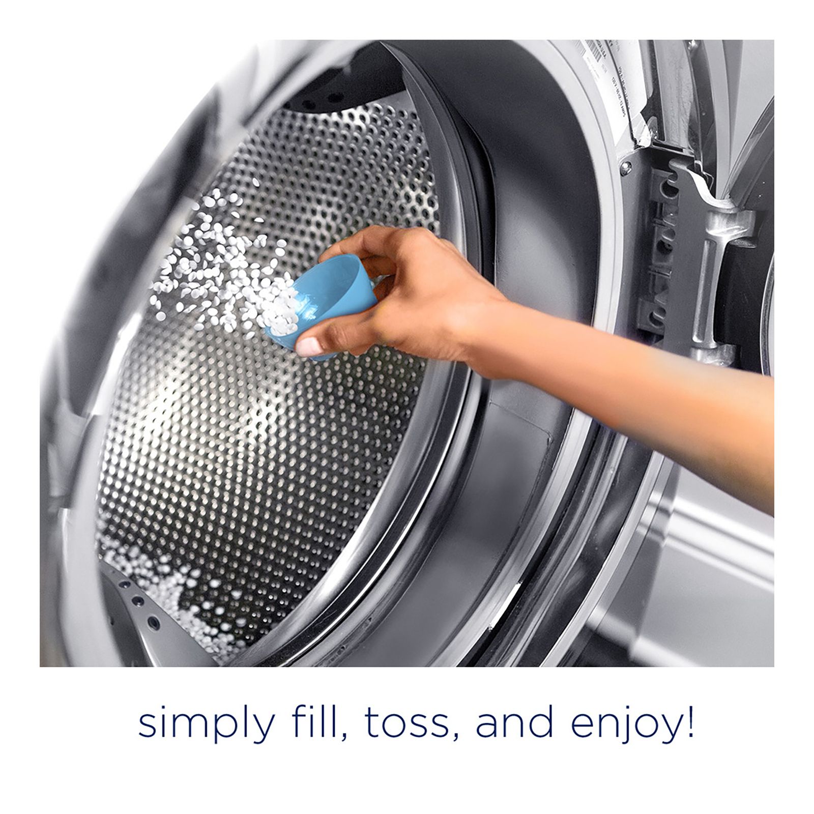 To start, simply toss half a cap of laundry beads into the washer drum before your clothing; next time, adjust the amount of beads to your desired level of freshness
