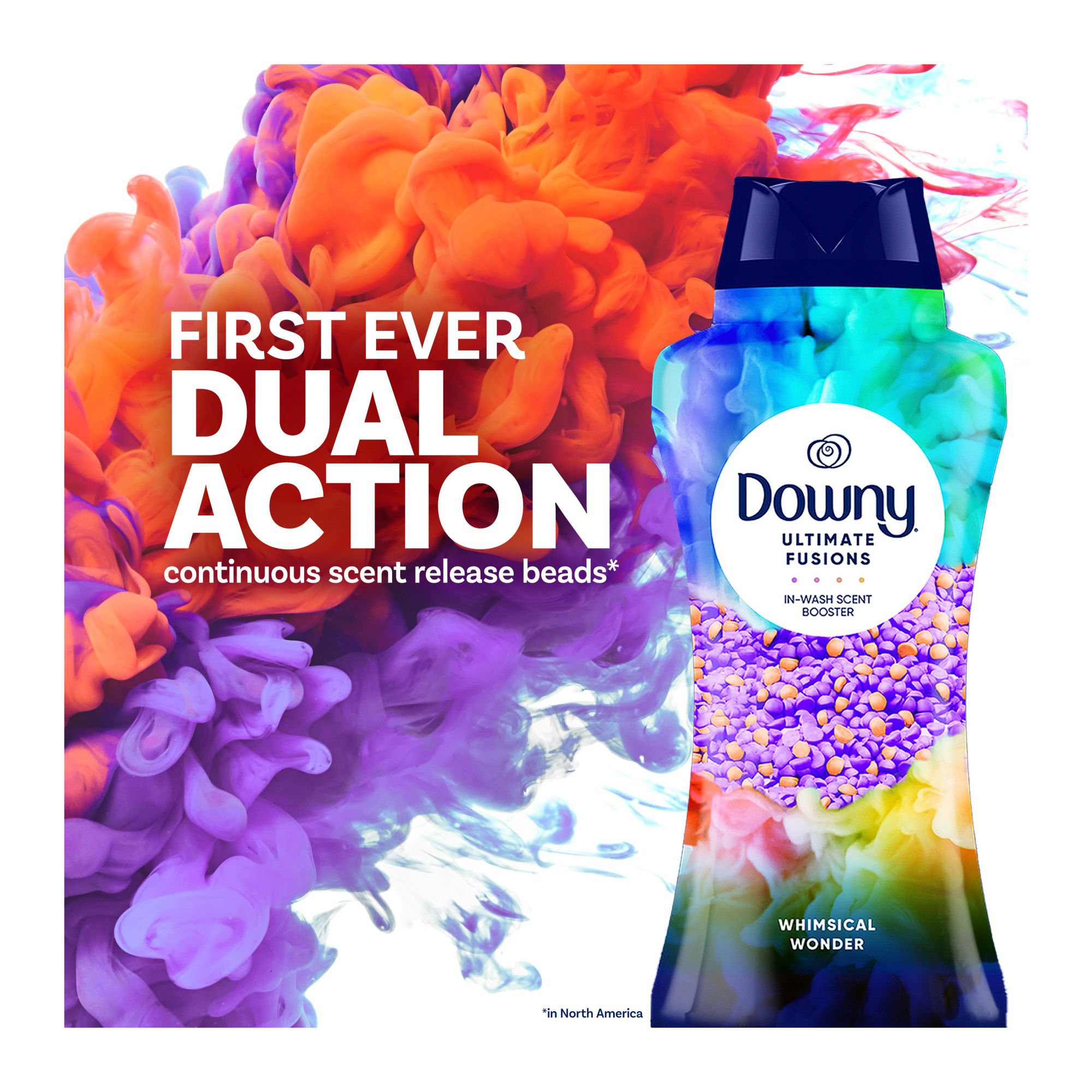 Made with Dual Action Technology that continuously releases scent for longer-lasting freshness Enjoy ultimate freshness from wash to hamper Whimsical Wonder scent with notes of sweet nectar, vanilla musk, and amber Just pour and toss in the washer Safe on all fabrics and loads Includes Downy Ultimate Fusions In-Wash Scent Booster Beads, 24 oz.