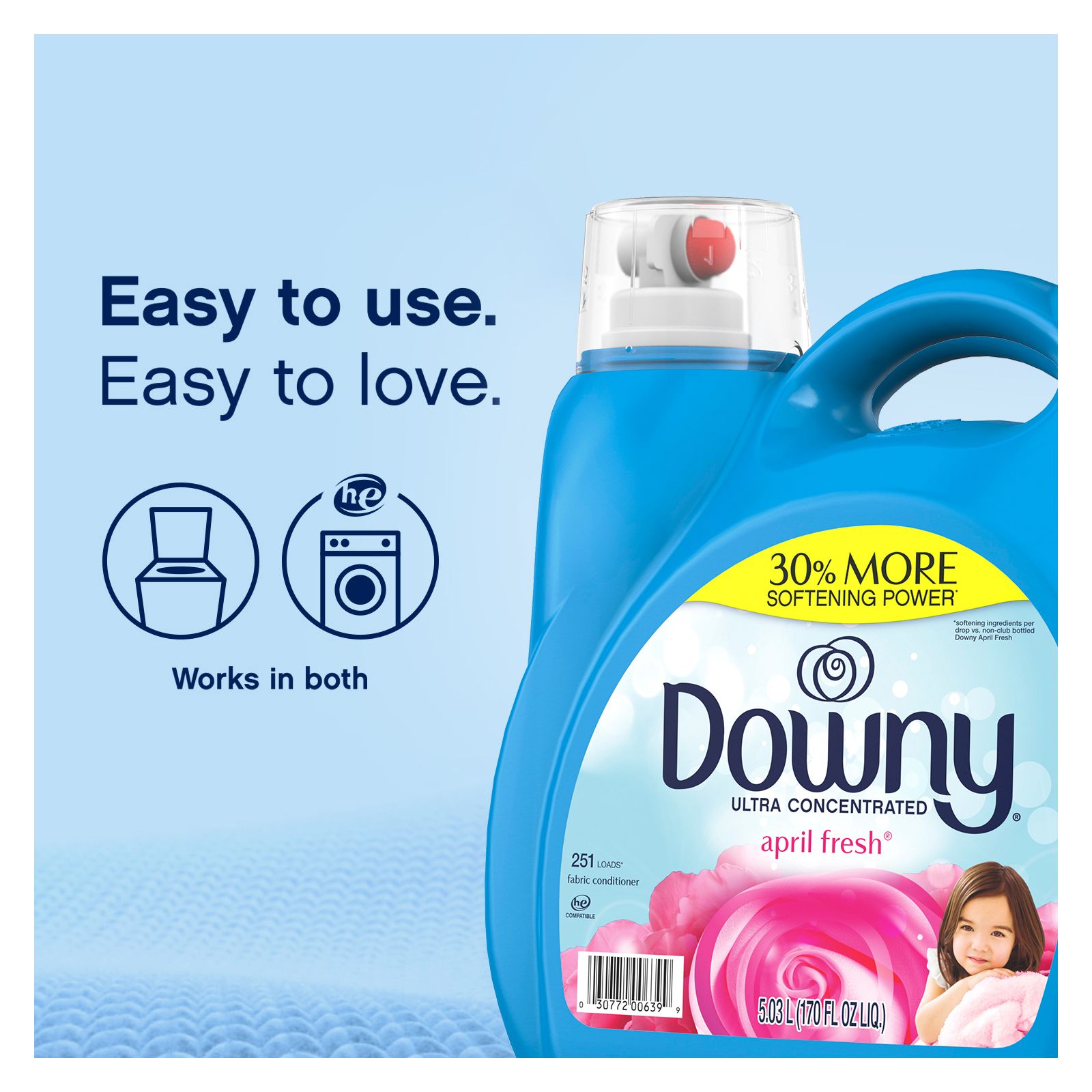 Looking for a fresh and easy way to care for your clothes? Downy April Fresh Liquid Fabric Conditioner softens, freshens, and protects your clothes with every capful. It helps protect from stretching, fading, and fuzz, and leaves them with a long-lasting, april fresh floral scent you’ll want to keep on sniffing, all day long. Plus, the Downy liquid fabric conditioner is more concentrated, delivering more softness per drop. Are your clothes full of static? This conditioning fabric softener helps fight it—so you don’t have to constantly fidget to keep your clothes in place. It also works hard to reduce more wrinkles (than if you were to just use detergent alone), leaving you feeling confident every time you step out the door. Downy april fresh liquid fabric conditioner is compatible with all top- and front-loading HE machines. It’s easy to use: Just add your clothes to the empty washer drum, pour Downy april fresh liquid fabric softener and conditioner into the liquid softener dispenser, and start the washer on your preferred cycle. Downy is the best way to care for your clothes, and it’s a must-have for any and every laundry-day routine, so your clothes will always look, feel, and smell their best.
