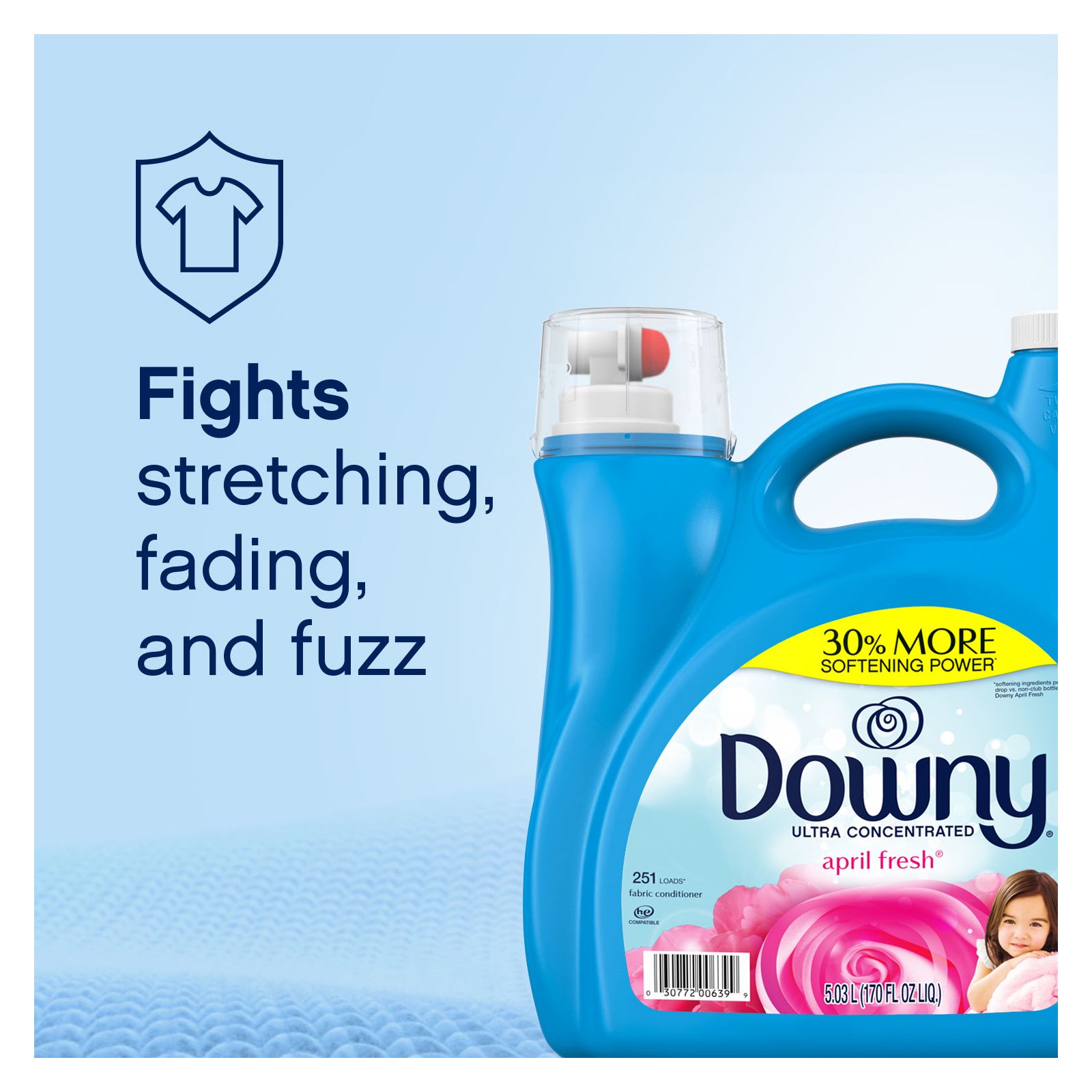 Conditions to help prevent stretching, fading, and fuzz Leaves long-lasting freshness Softens fabrics Reduces more wrinkles than detergent alone 251 loads Compatible with HE machines Includes ultra liquid april fresh fabric conditioner, 251 loads