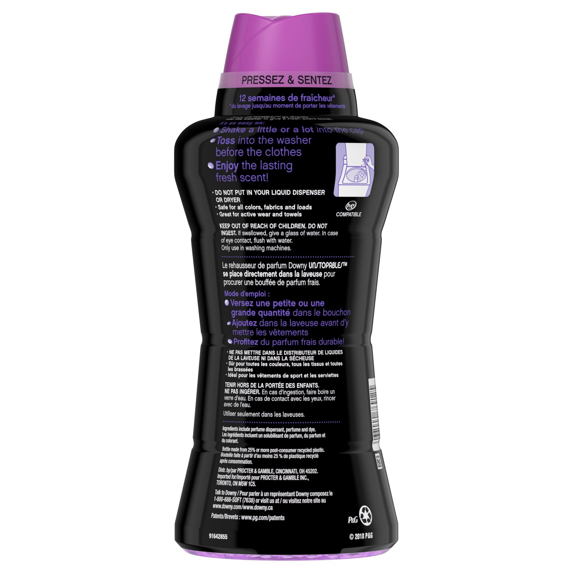 Downy Unstoppables In-Wash Scent Booster adds 12 weeks of freshness that elevates the everyday (freshness out of storage) Lush is a bright lavender scent mixed with cedar-inspired undertones and sumptuous vanilla layers Downy Unstoppables In-Wash Scent Booster can be used on all colors and fabrics, and is safe to use in all washing machines Shake a little or a lot of Downy Unstoppables laundry scent beads into the cap Toss into the washer at the beginning of the wash—before clothes, laundry detergent, and fabric softener Unstoppables LUSH In-Wash Scent Booster