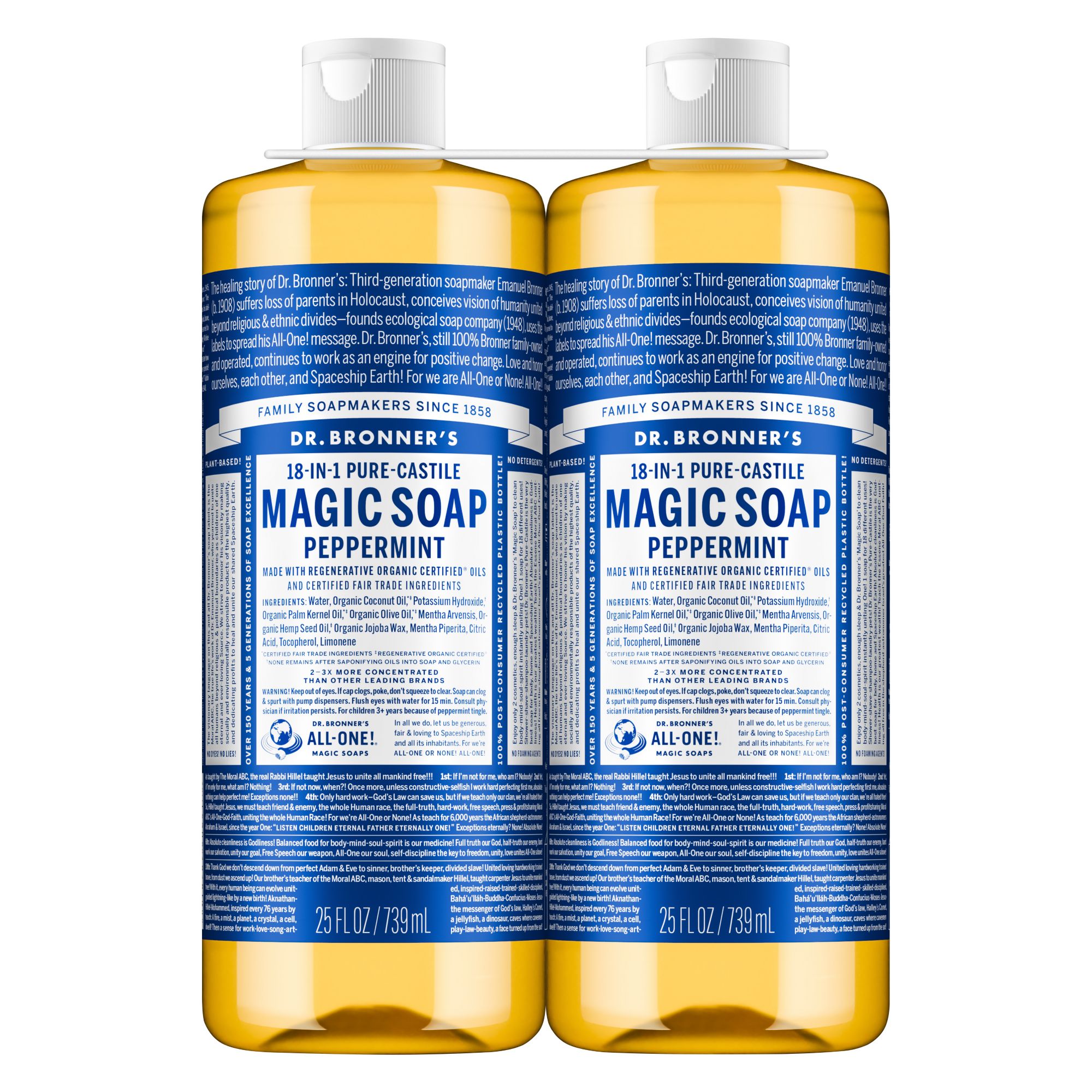 This soap is shown to be readily biodegradable under the stringent testing conditions utilized pursuant to OECD Guideline 310. The Peppermint Soap With More Than 18+ Uses! Dr. Bronner’s 18-in-1 Pure-Castile Soaps are multi-surface all-purpose cleaners good for just about any task. Wash body, hair, hands. Clean toilets, bathtubs, countertops, dishes - great for laundry, mopping, pets, and aromatherapy - with no synthetic preservatives, detergents or foaming agents - none!