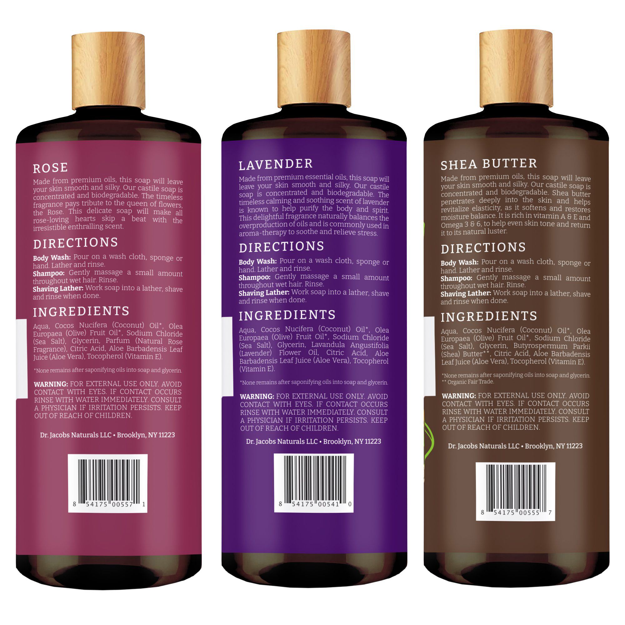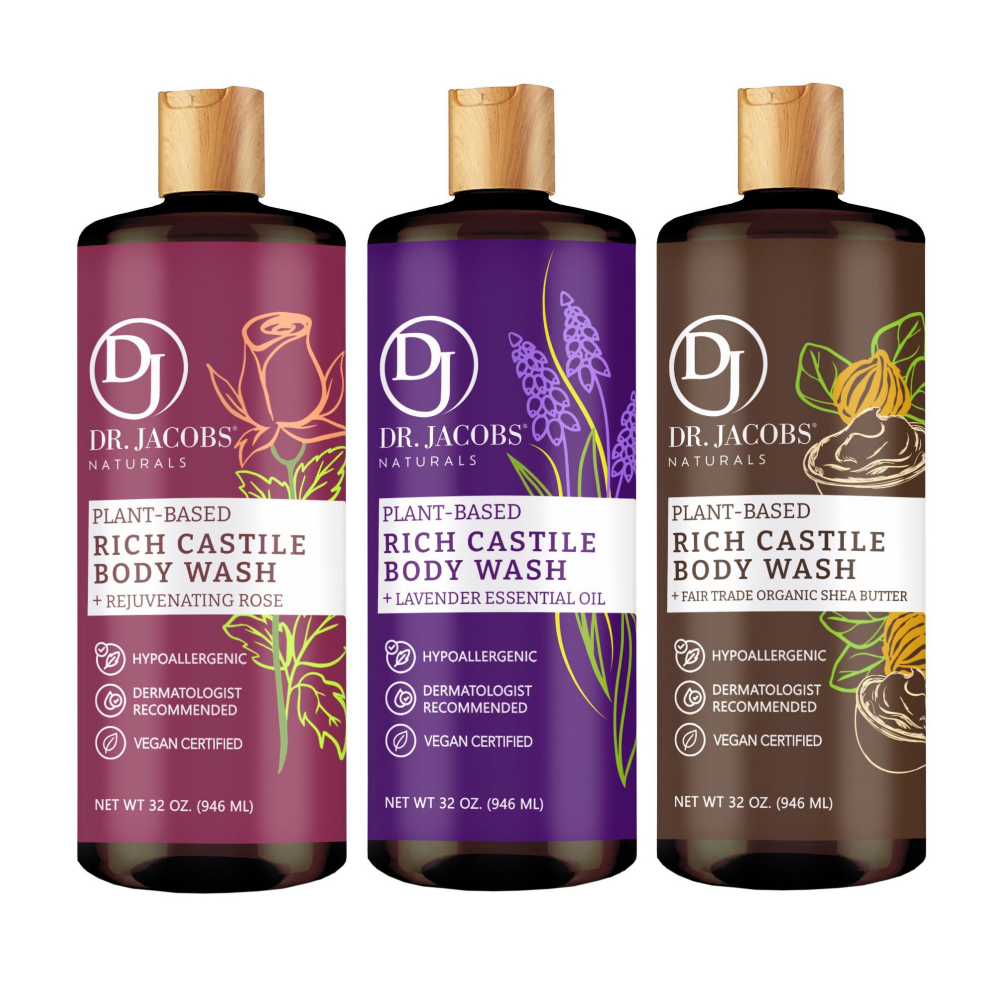 Dr Jacobs Castile Body Wash, 3 pk./32 oz. - Rose, Lavender, Shea Butter