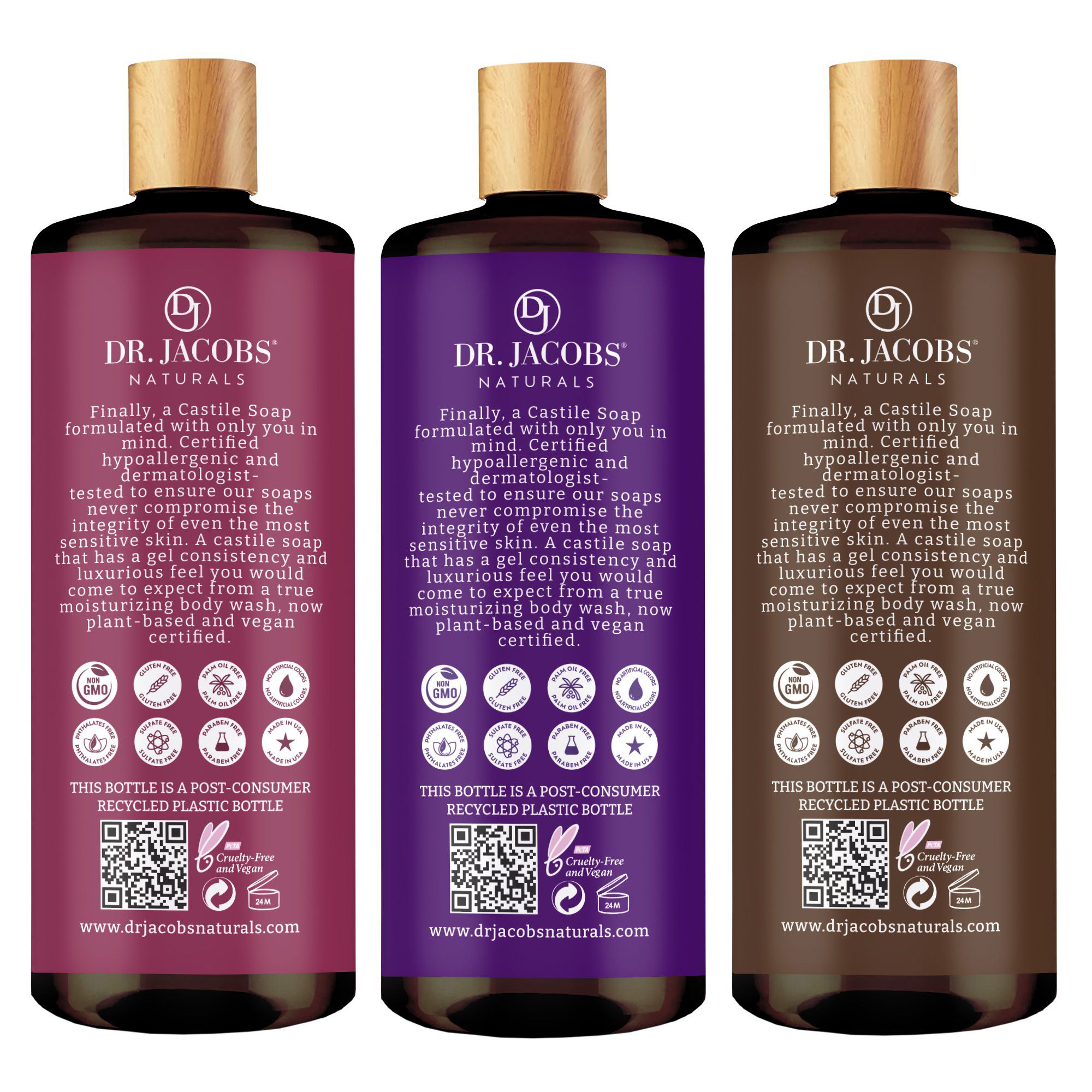 The First and Only Certified-Hypoallergenic and dermatologist-tested castile soap brand. This face and body wash are safe and non-irritating for even the most sensitive skin types 100% plant-based with antioxidant-rich ingredients like olive and coconut oil We understand that you care about not only your health but also the world around you. Not only are we free of palm oil, but we are also biodegradable, certified vegan, cruelty-free, 100% natural, and certified Non-GMO Dr. Jacobs Castile soaps produce a decadent lather without using sodium lauryl sulfate (SLS), which strips the skin of its natural oils and leaves skin dry and irritated, and can exacerbate skin conditions Made in USA Safe for the Whole Family – Even your pets