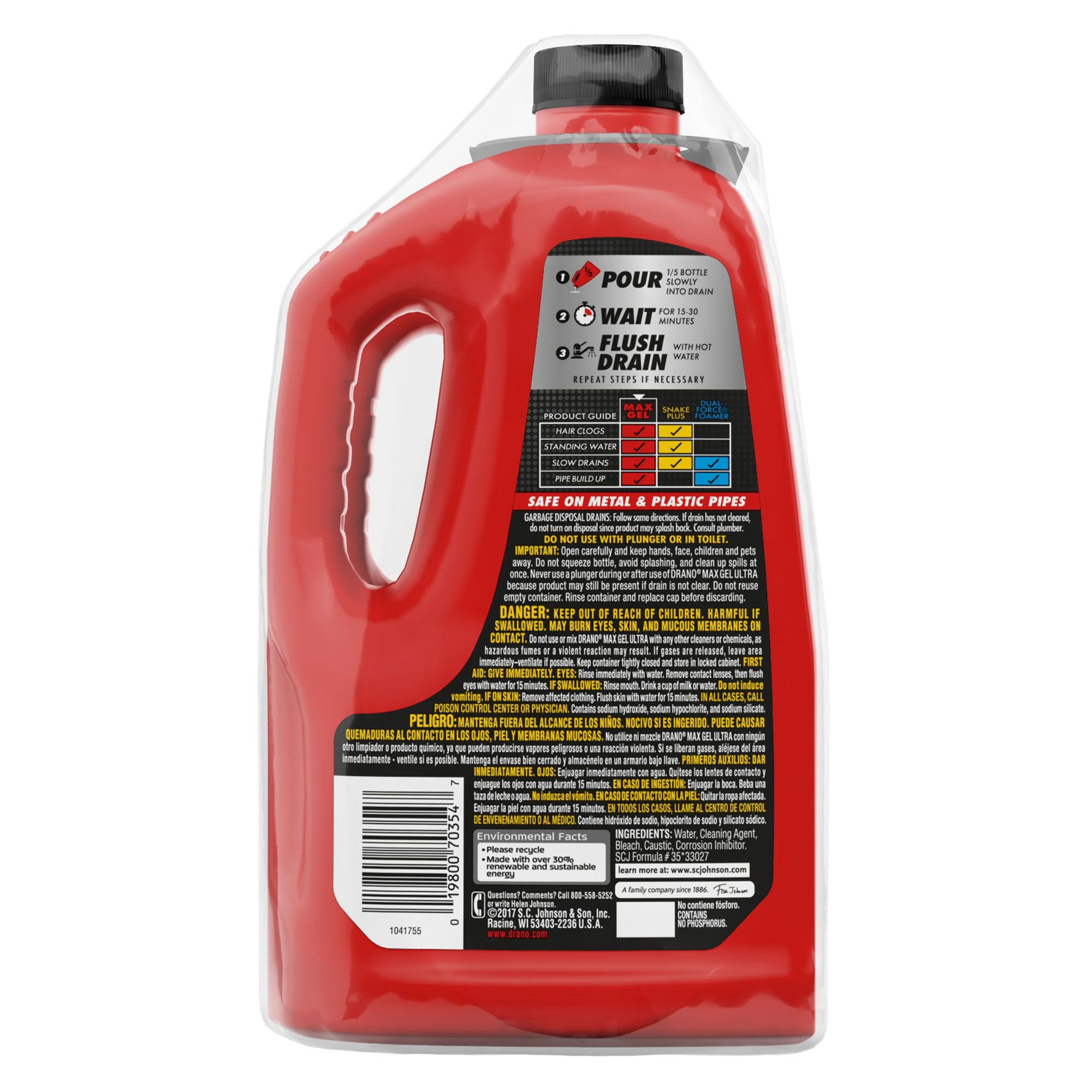 The thick bleach formula in Drano Max Gel Clog Remover cuts right through standing water, clinging to your toughest clogs to blast them fast. It works great in just 15 minutes to remove hair, soap scum, and other gunky clogs. Safe for garbage disposals, bathroom, kitchen and other drains, like laundry sinks.