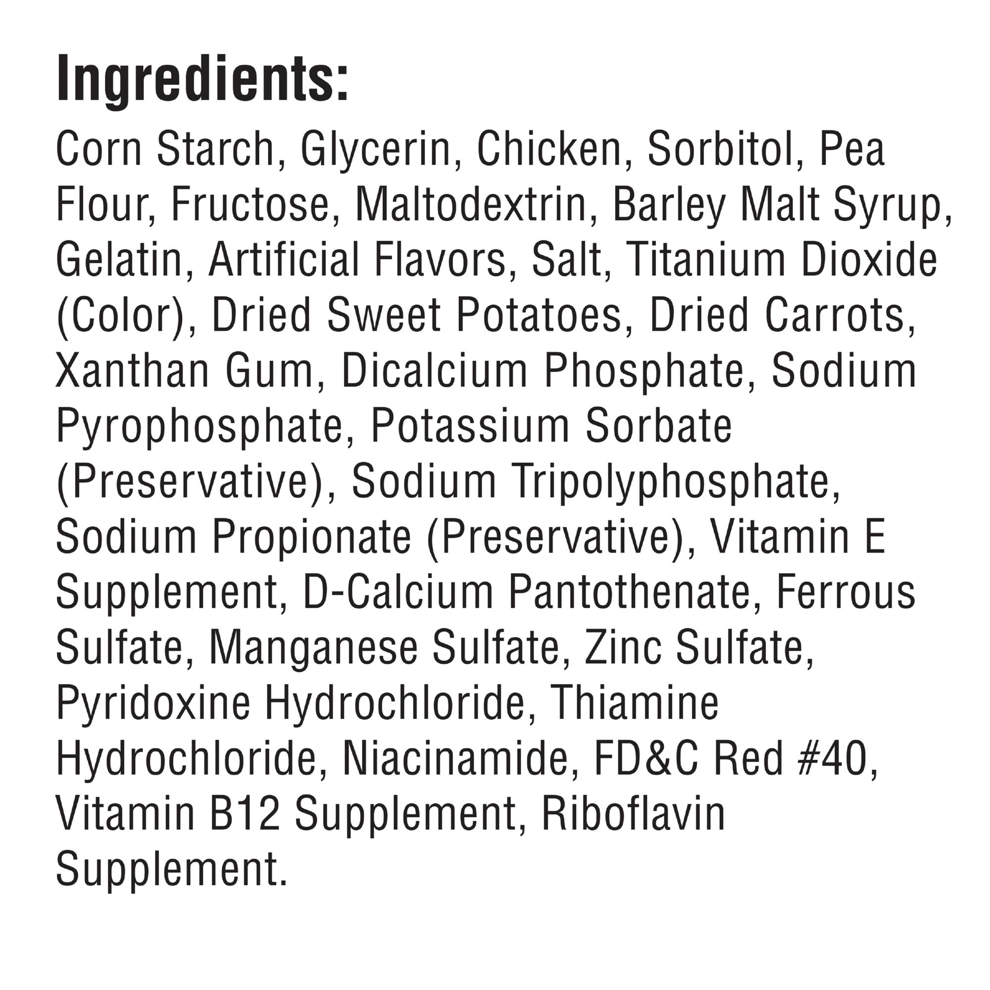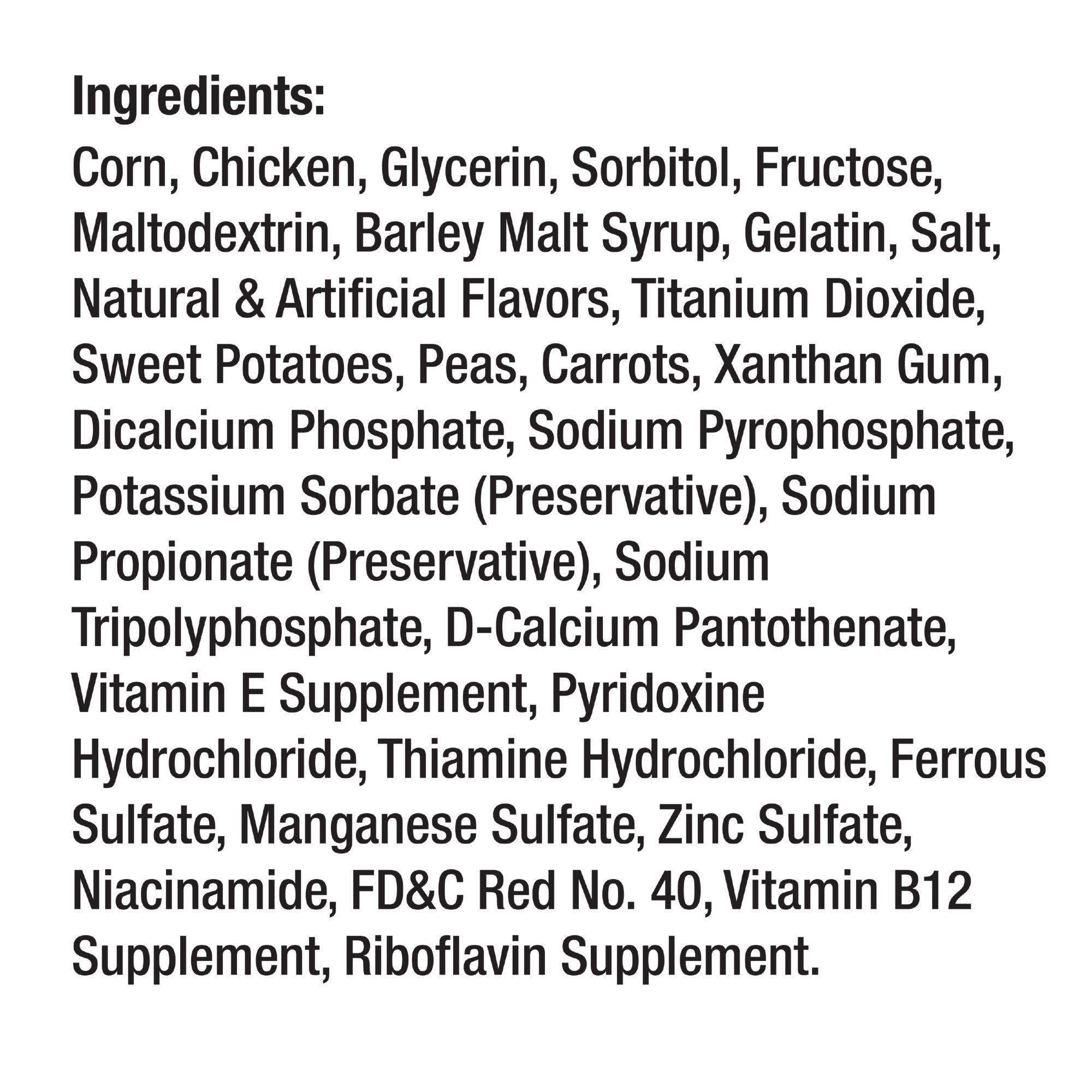 Made with wholesome vegetables and real chicken rolled into a stick for a taste dogs love 100% rawhide-free and highly digestible for a healthy alternative to rawhide treats With corn, sweet potatoes, peas and carrots, and real chicken Safe and long-lasting Vitamin-enriched