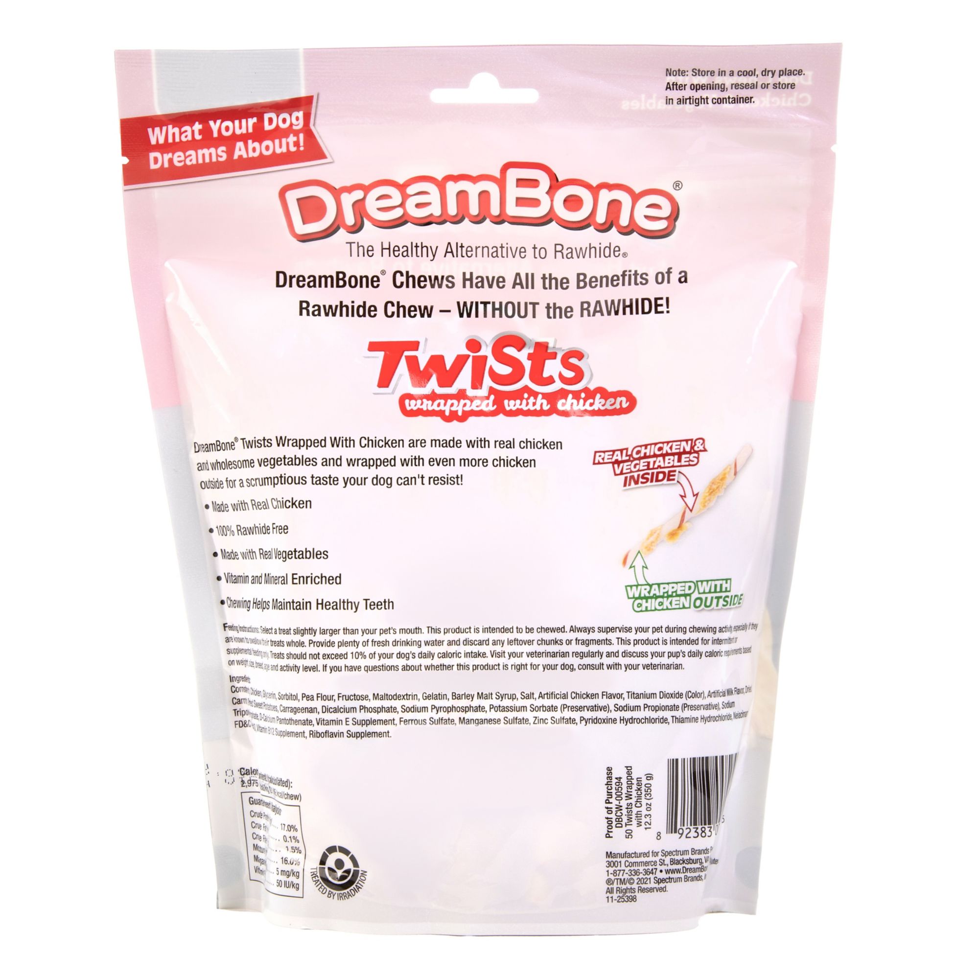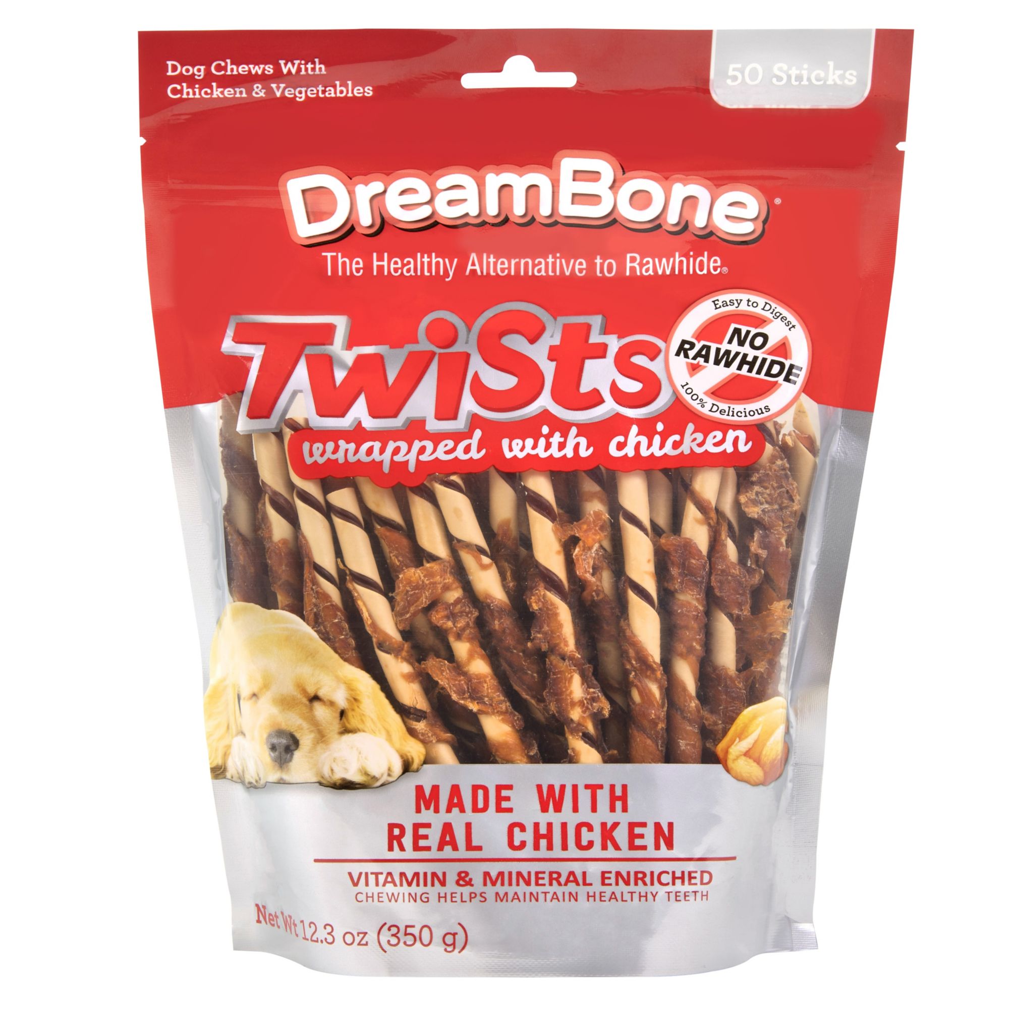 Inludes Dreambone Twists wrapped with chicken, 50 ct.