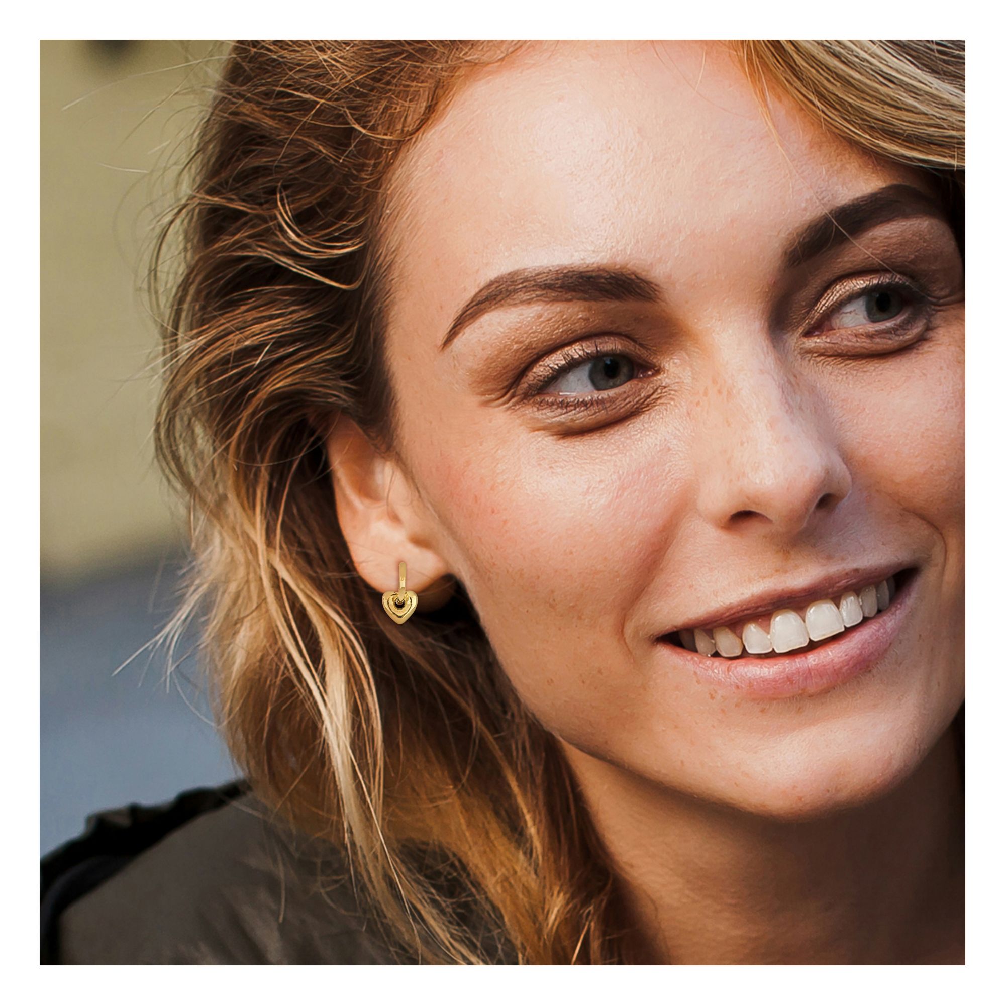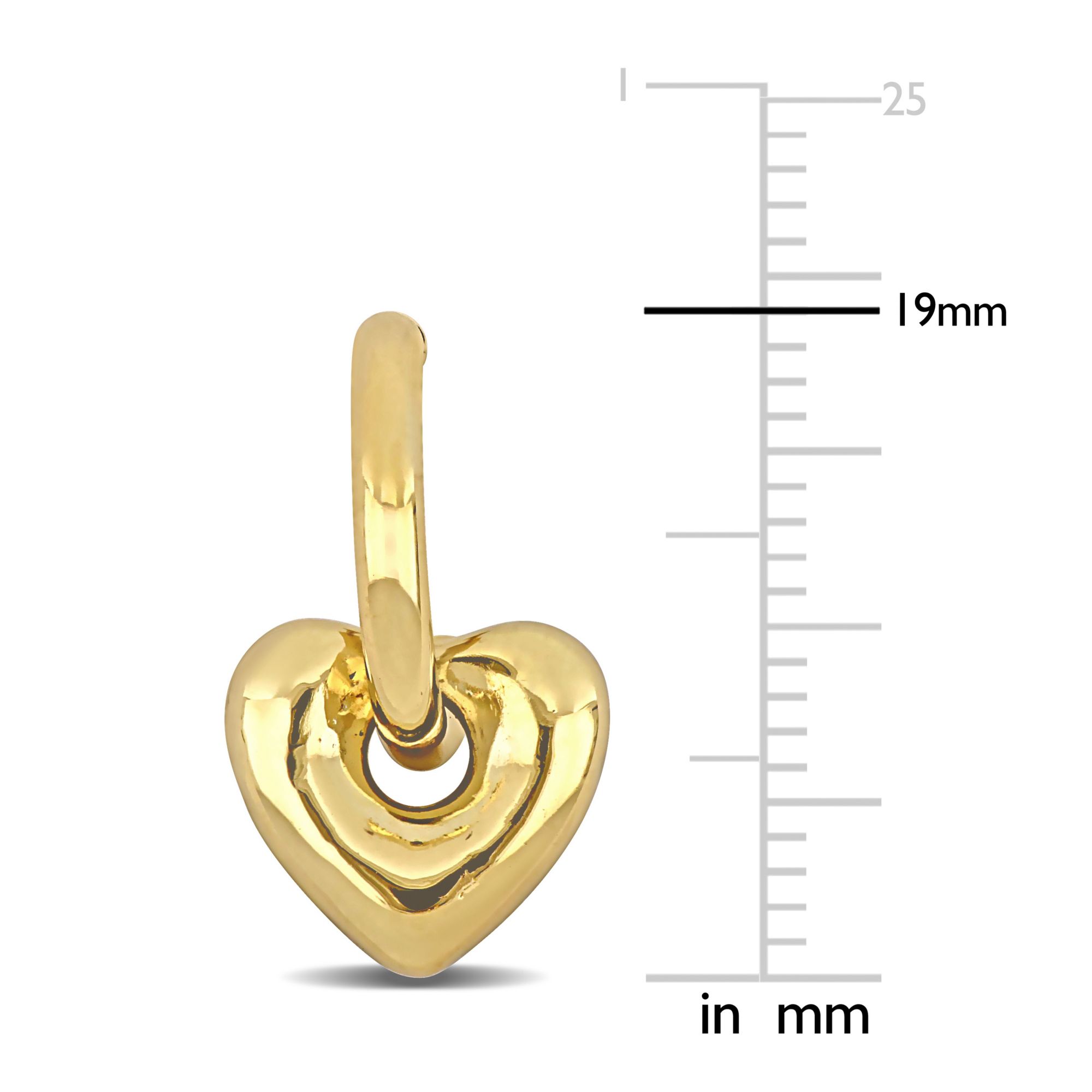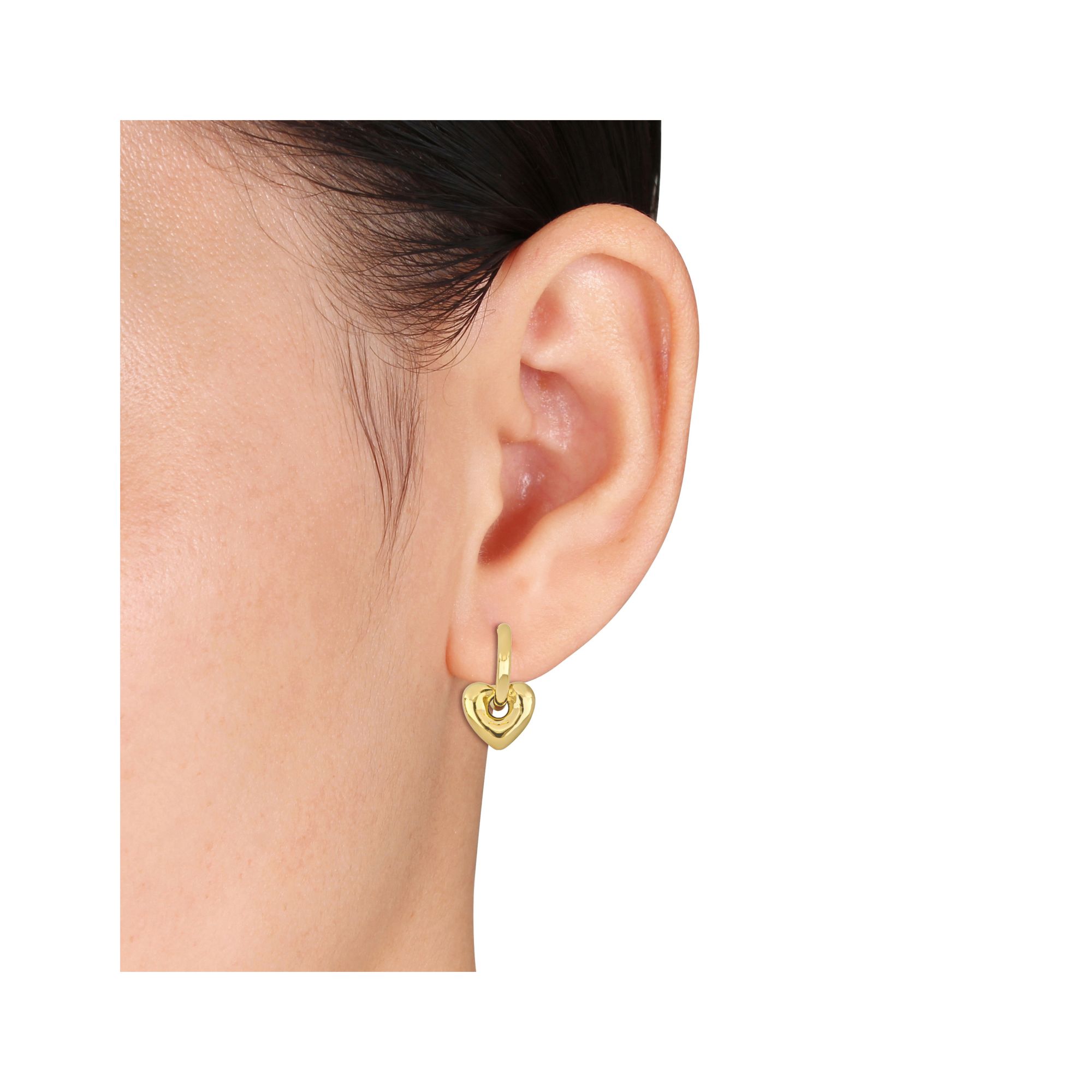 The Puff Heart Open Back Hoop Earrings in 10k Yellow Gold are the perfect addition to any jewelry collection. Open-back hoops are elegant and classic, while the drop puff heart adds a touch of fun and whimsy. These earrings are perfect for any occasion, from a night out on the town to a casual brunch with friends. The minimalist design makes them easy to layer and stack with other jewelry pieces. Give the gift of cute with charming heart earrings that are sure to brighten up any outfit.
