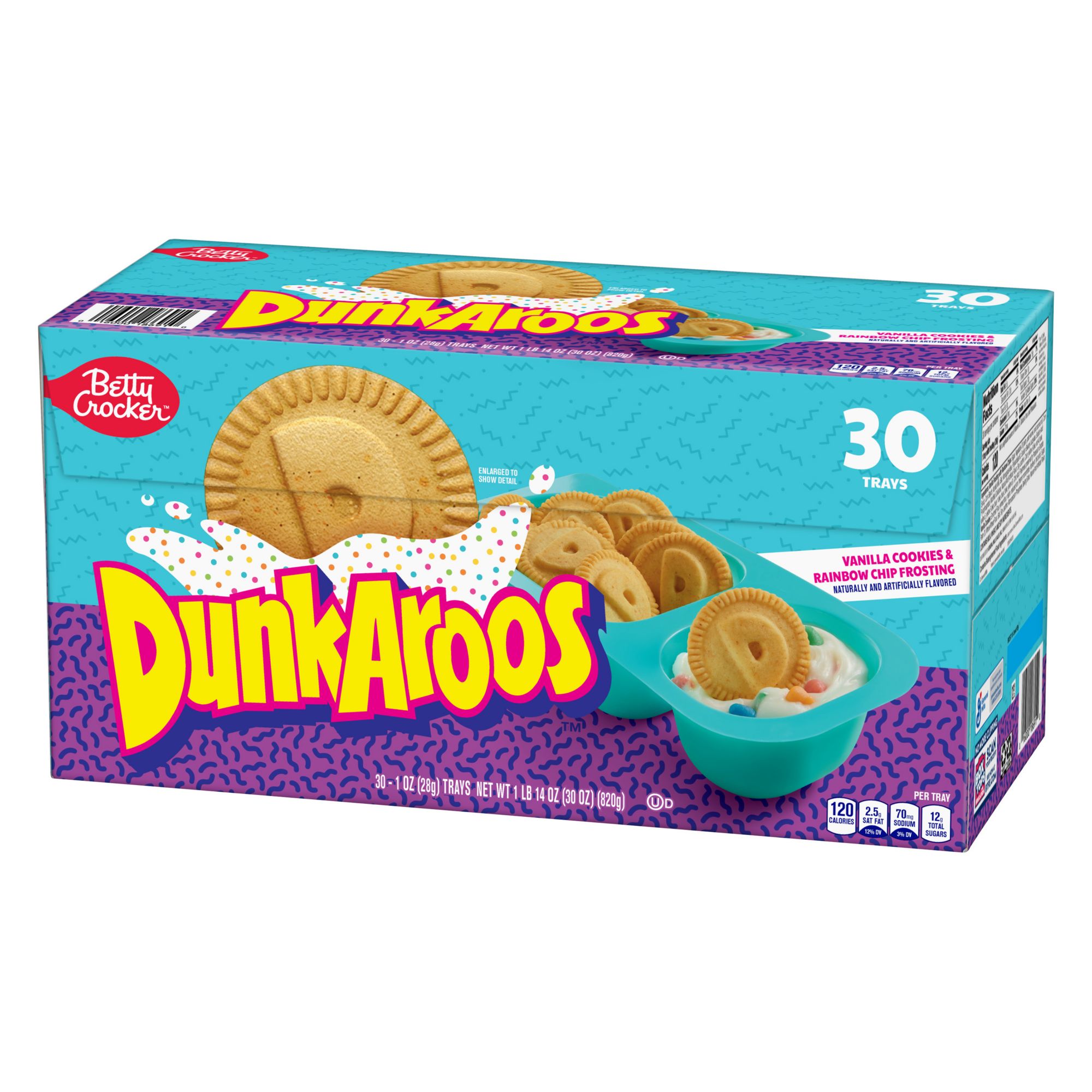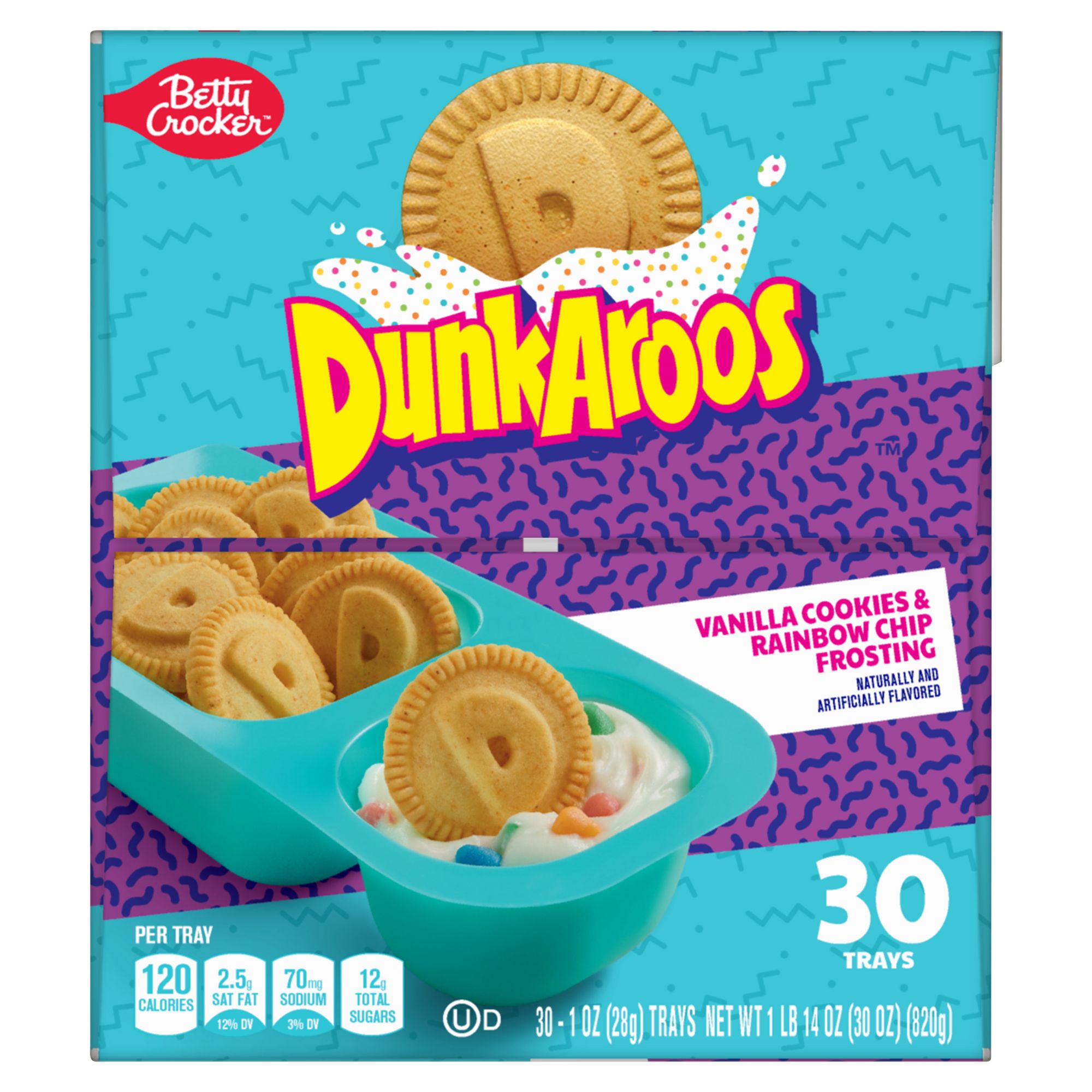 30 - 1 OZ (28g) TRAYS Vanilla Cookie and Vanilla Frosting with Rainbow Sprinkles Your favorite snack from the 90s is back The most epic frosting and cookie dunking duo The perfect snack to curb your cravings Take this tasty treat with you on the go