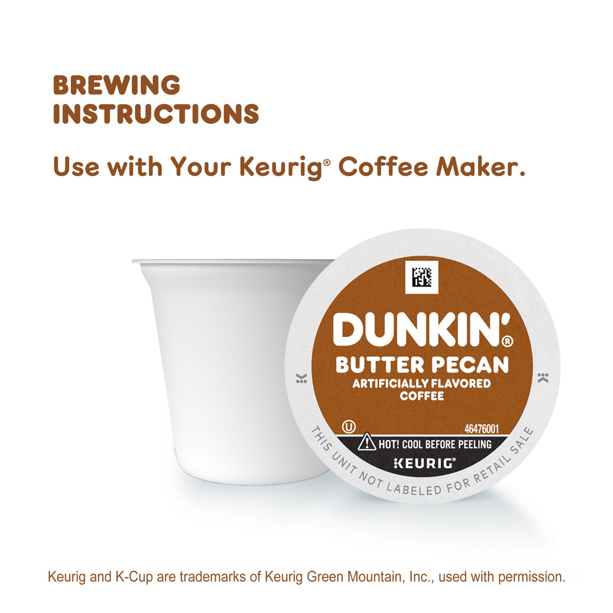 Mmmm … the sweet, creamy delight of butter pecan ice cream. With Dunkin' Butter Pecan Artificially Flavored Coffee, you can treat yourself all season long. This medium roast coffee is the kinda flavor you’ll fall for - rich and nutty, with sweet undertones and a balanced, smooth finish. And thanks to these convenient K-Cup pods, you can brew a cup anytime in your Keurig coffee maker. Drink this coffee as-is or make it your own by adding your favorite creamer and sweetener. It’s the perfect way to enjoy the great taste of Dunkin' at home. Order some today and love this fall flavor while it lasts.