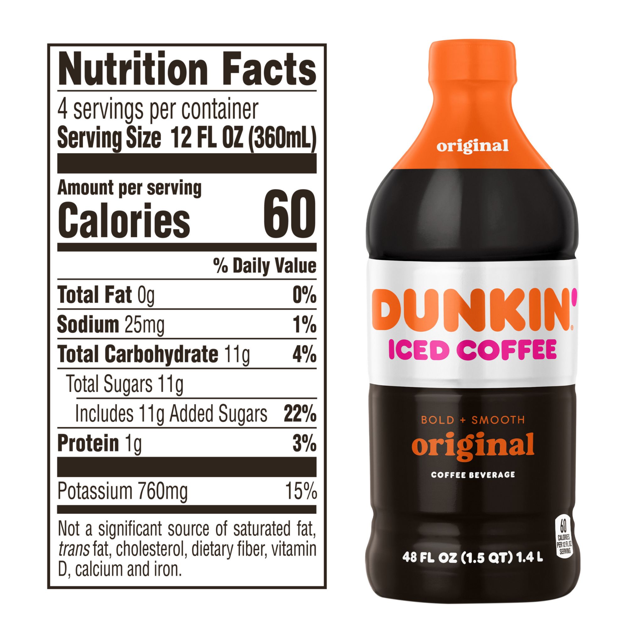 Rich, smooth Dunkin’ Original Iced Coffee in a 48 fl. oz. bottle to keep you running on Dunkin’ all week