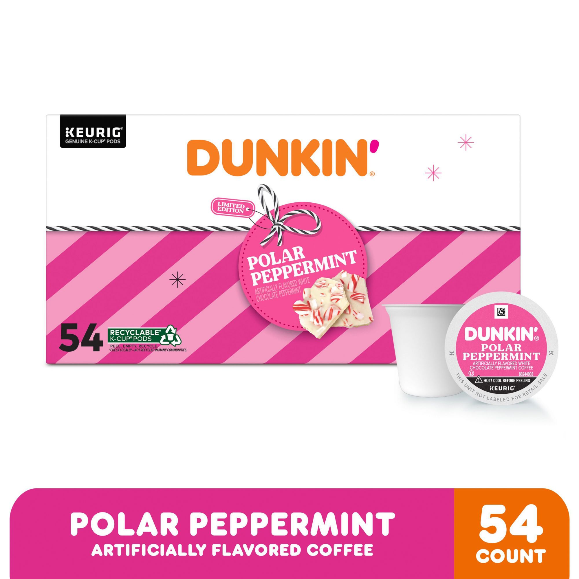 Dunkin' White Chocolate Peppermint Artificially Flavored Coffee, K-Cup Pods, 54 ct.