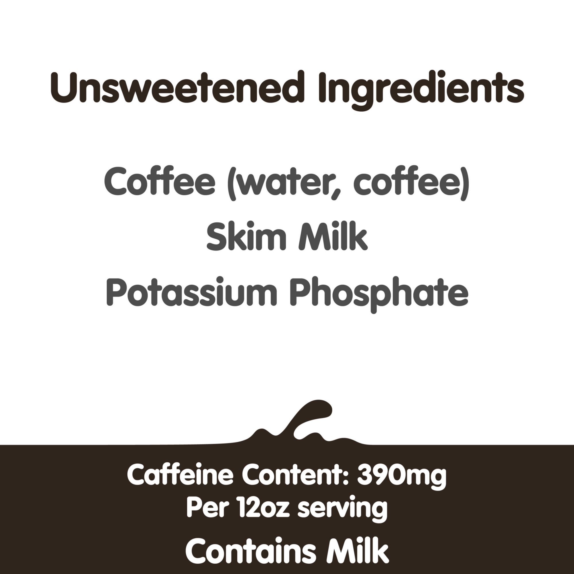 Ingredients: Coffee, (water, coffee), potassium phosphate, skim milk. Contains milk; caffeine content 390 mg per 12 fl oz serving