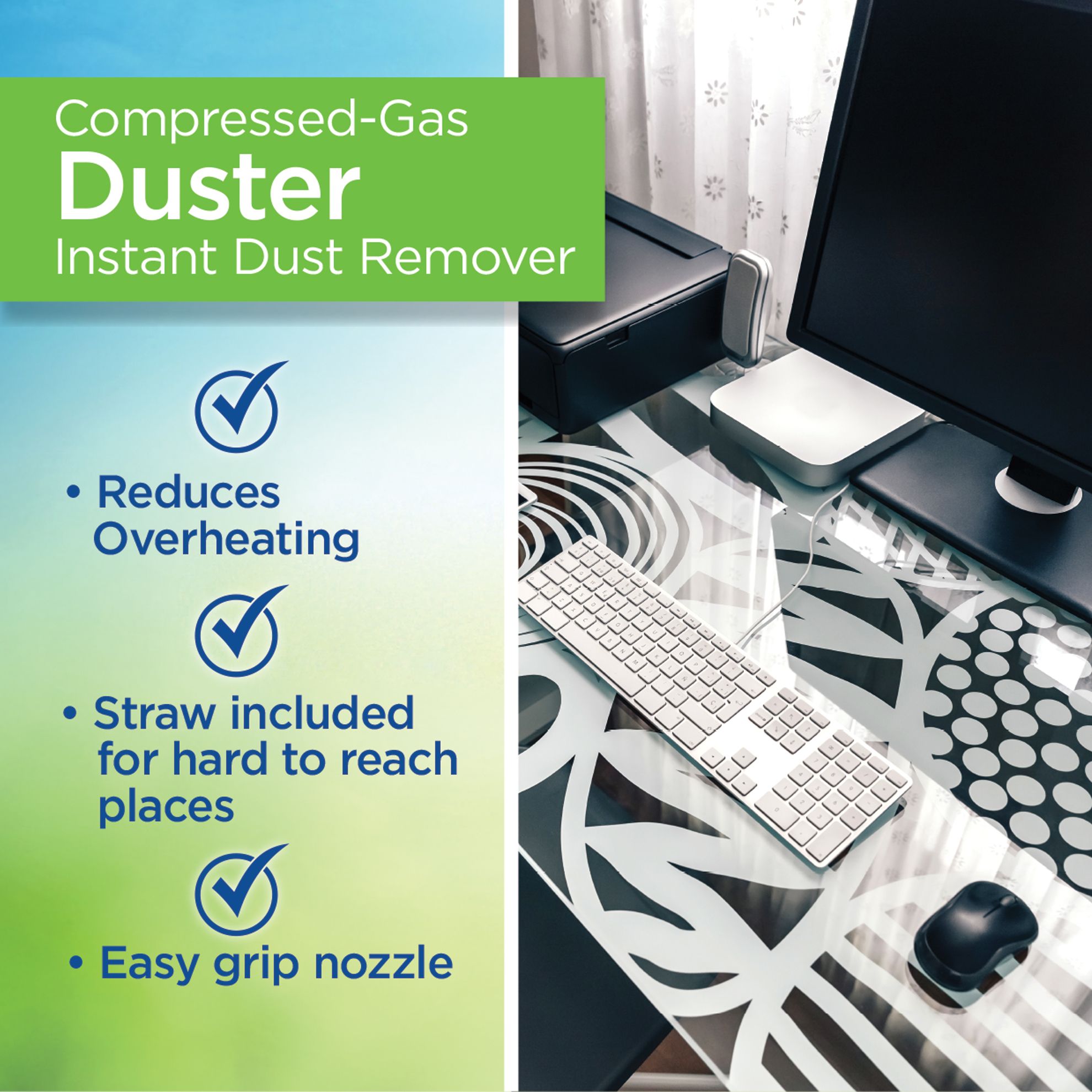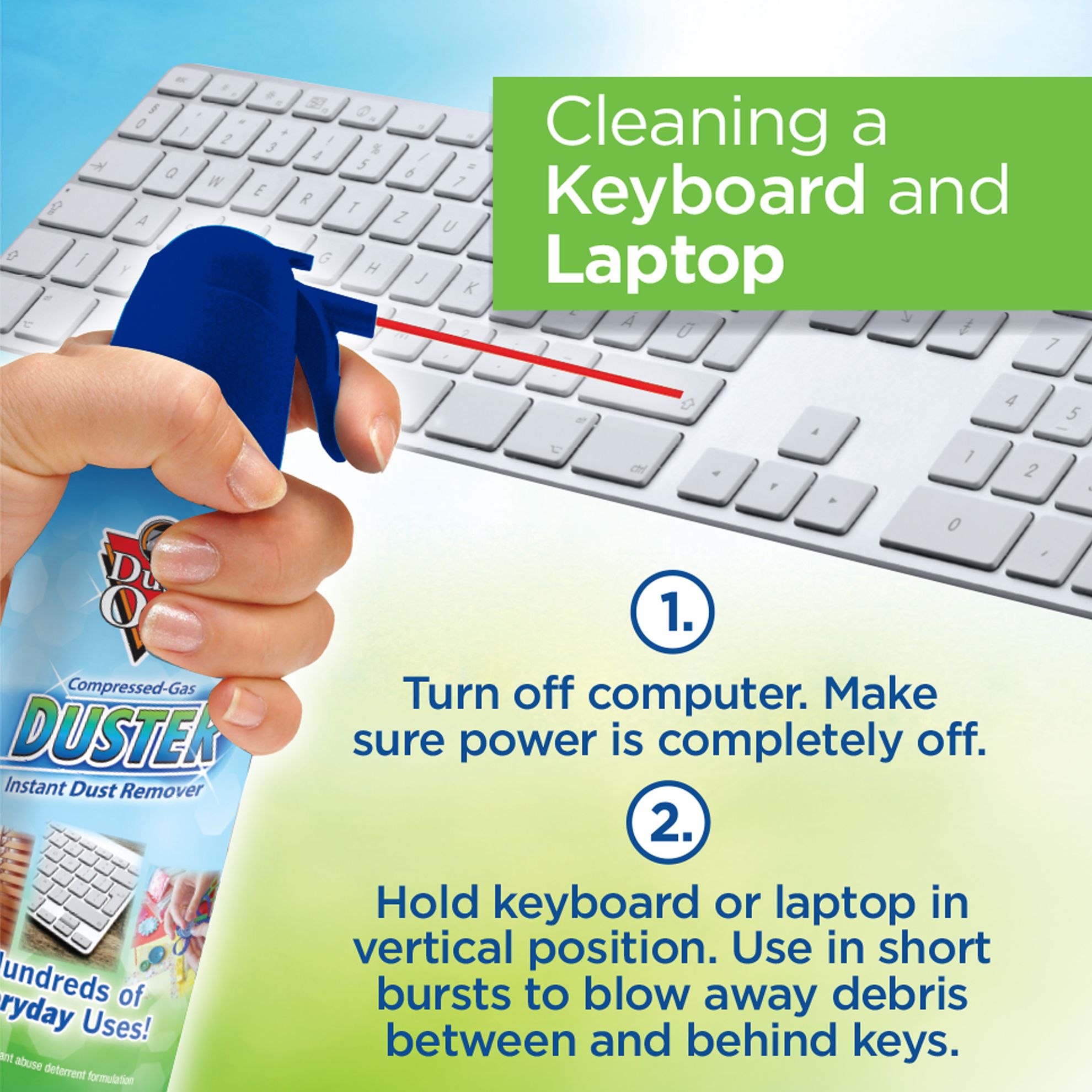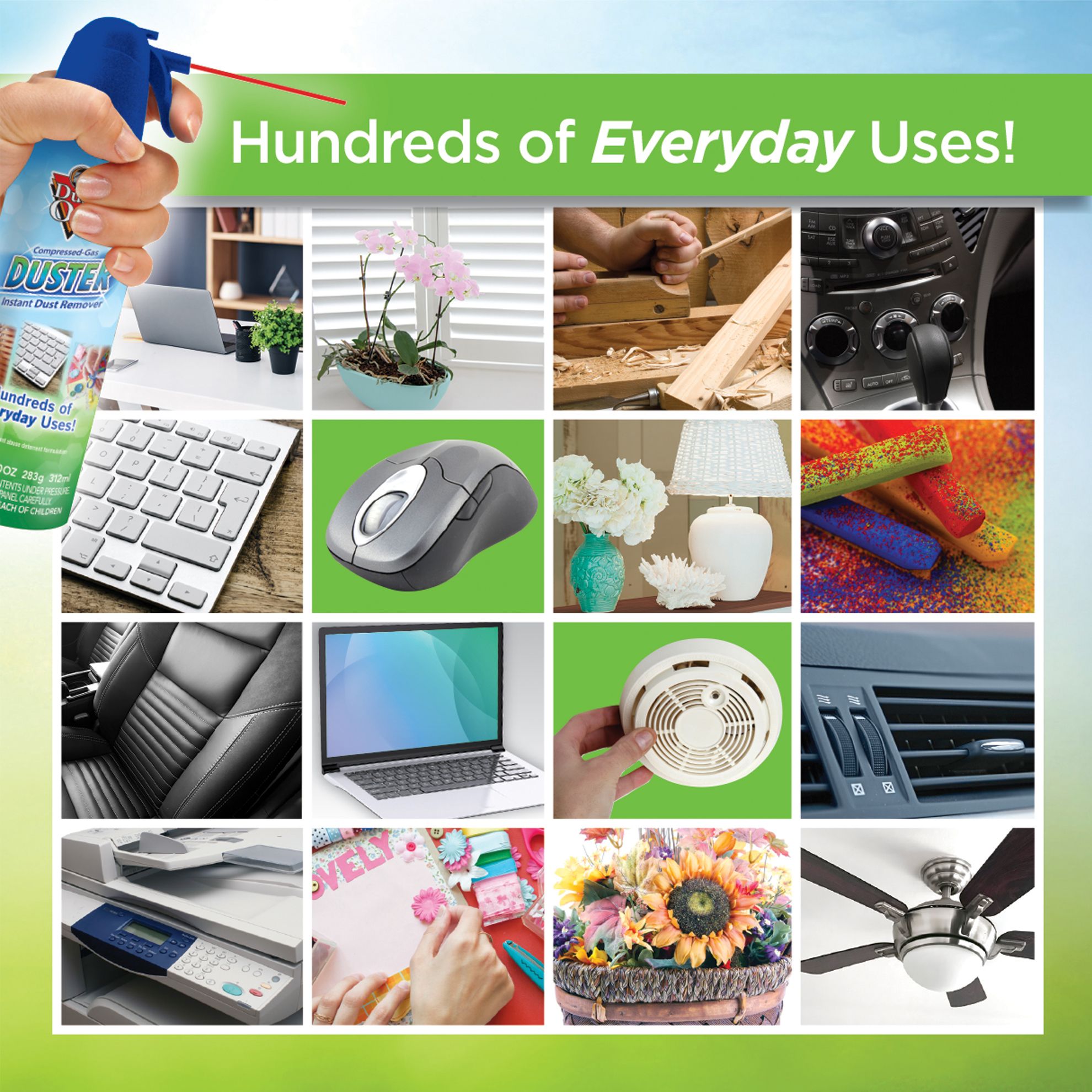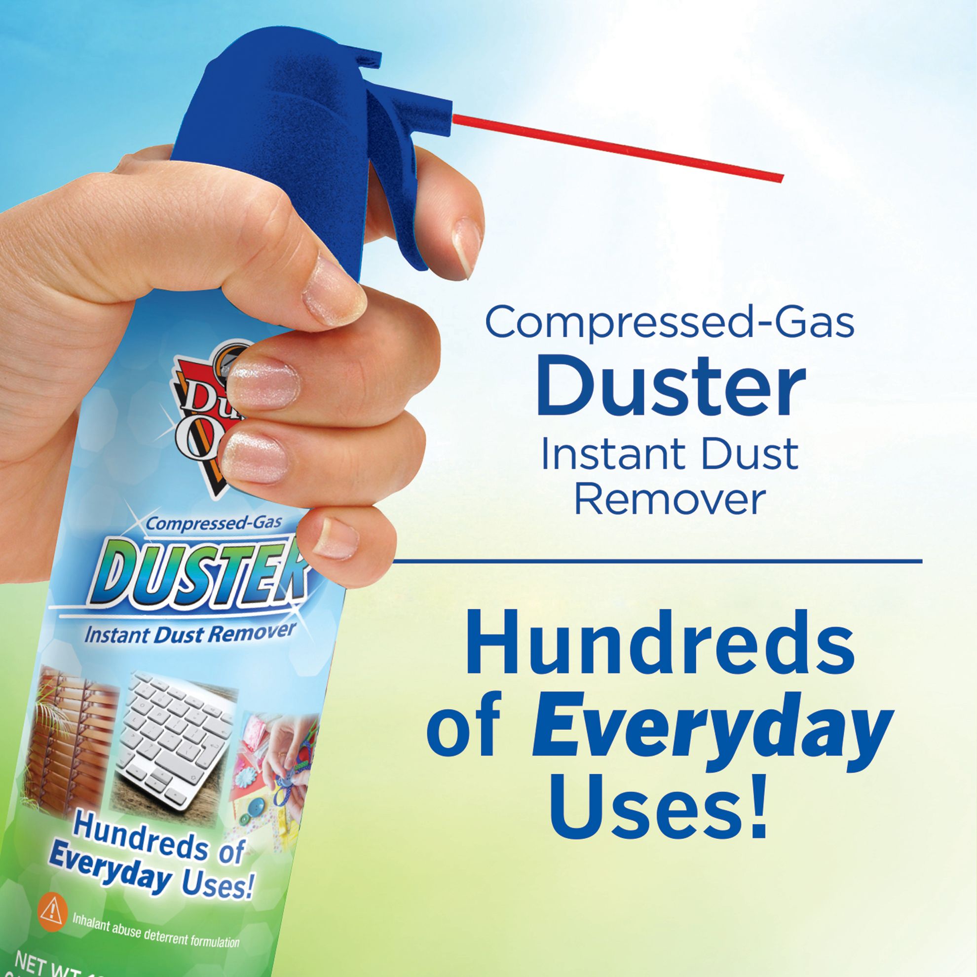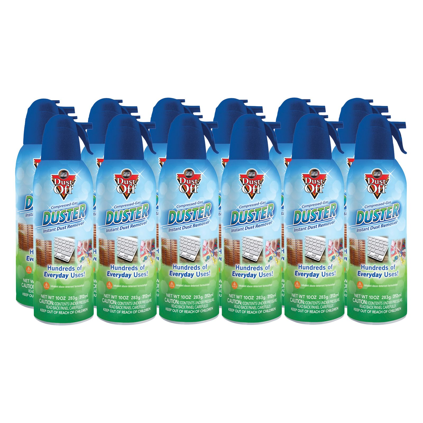Provides potent dust-removing power for practically any task Ideal for cleaning technology like keyboards, CPU and laptops Great for removing dust aroud the home-like window blinds, collectibles, sewing machines, holiday ornaments, craft projects and silk flower arrangements Extension straw to get into hard to reach places Contains a bitterant to help discourage inhalant abuse Includes 12 10-oz. dusters
