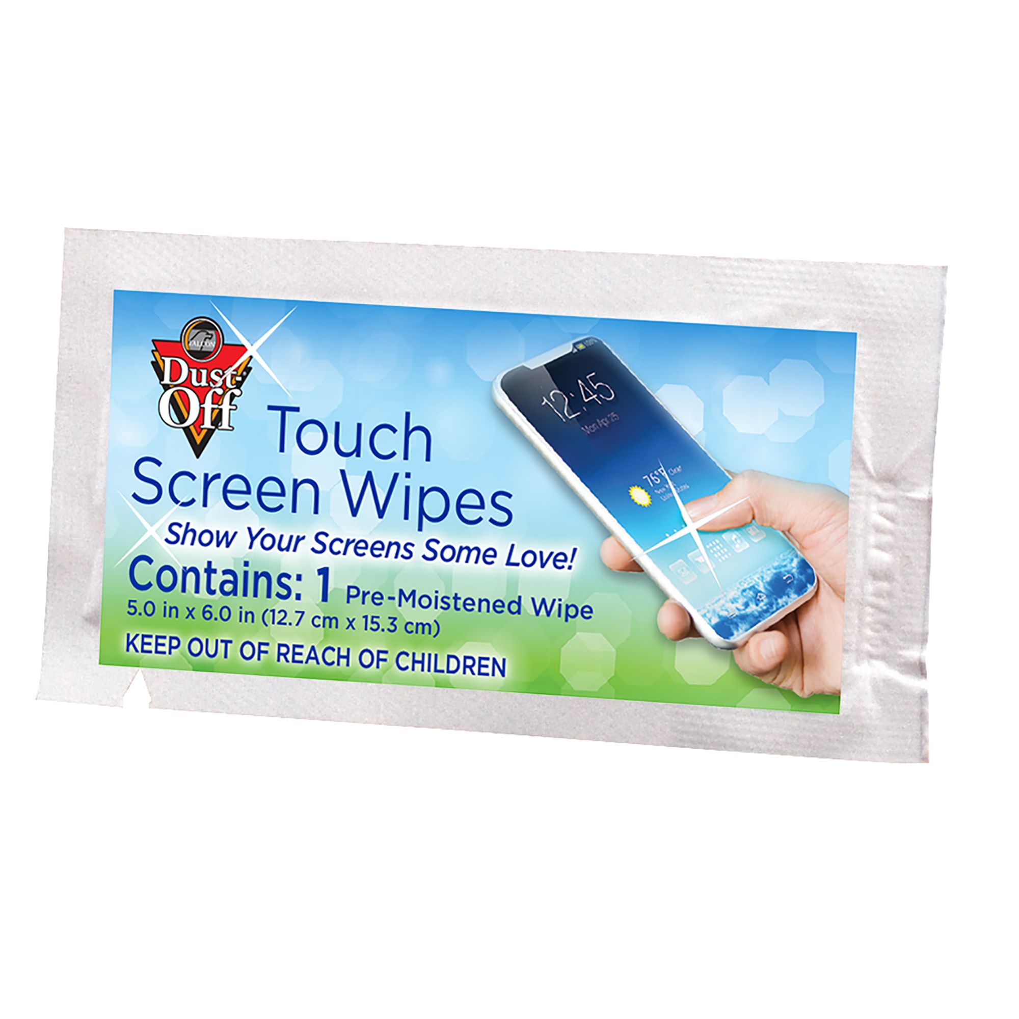 Dust-Off Touch Screen Wipes help keep your screens clean at home, office, or on-the-go. Simply grab one or two and keep in your purse or pocket for whenever your device gets dirty. These wipes are also 100% plant-base, environmentally friendly and compostable.