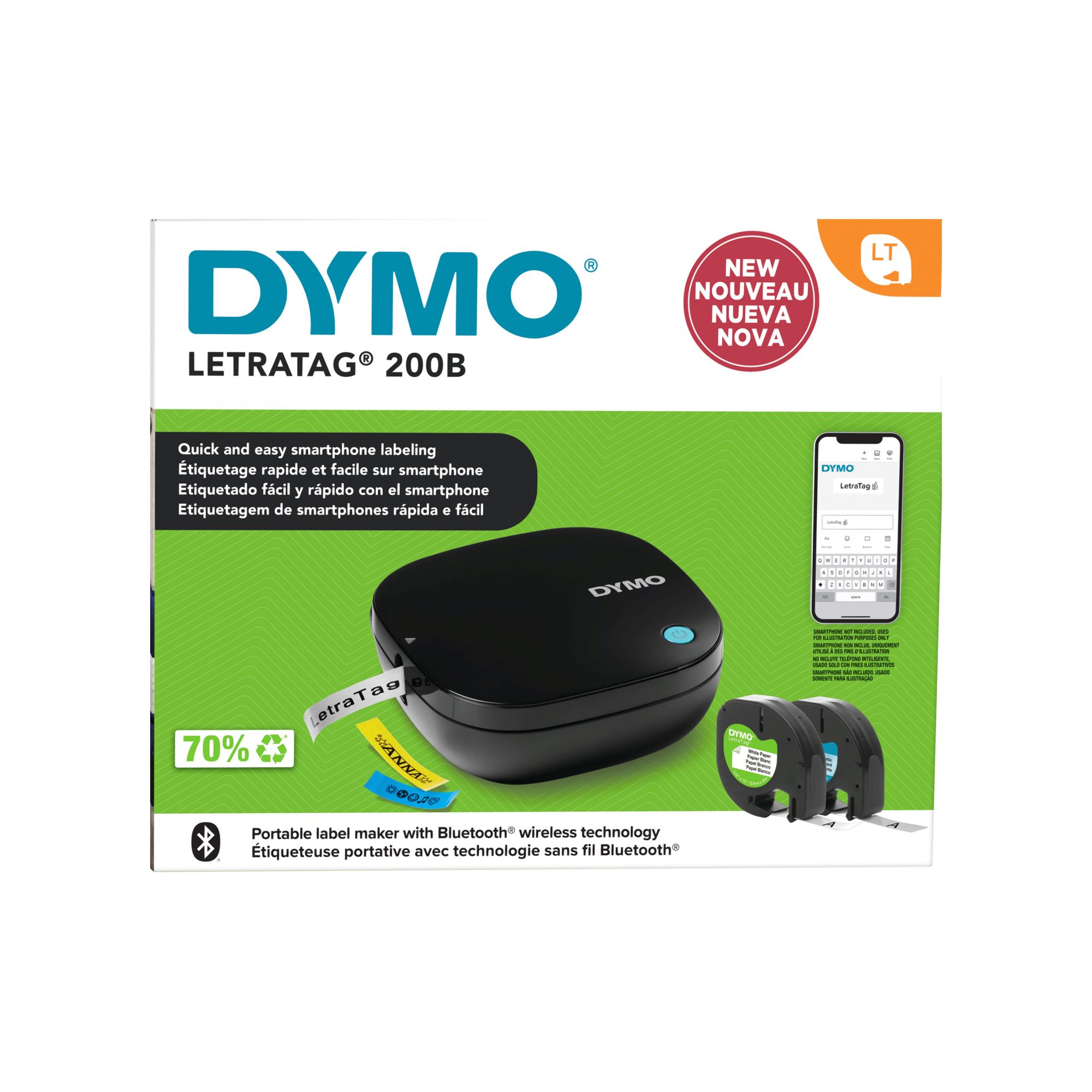 Print a wide range of label types and colors directly from your smartphone or tablet with the DYMO LetraTag 200B Bluetooth Label Printer. With the intuitive LetraTag Connect mobile app, you’ll be able to create labels and easily organize your home and home office, straight from your preferred device. The LetraTag 200B label maker slips neatly into your bag and is ready to go in seconds, thanks to its automatic Bluetooth wireless technology connection. This DYMO label printer works with authentic LetraTag labels, with an external cassette made from 100% recycled materials. The paper labels are also FSC-certified. Ideal for all of your labeling needs, from kitchen, bathroom, kids' room, and student dorm room storage to home office and craft organization—you can even keep track of kids' clothing and backpacks with LetraTag iron-on fabric labels. This order includes two LetraTag label tapes (white paper, white plastic, and clear plastic).