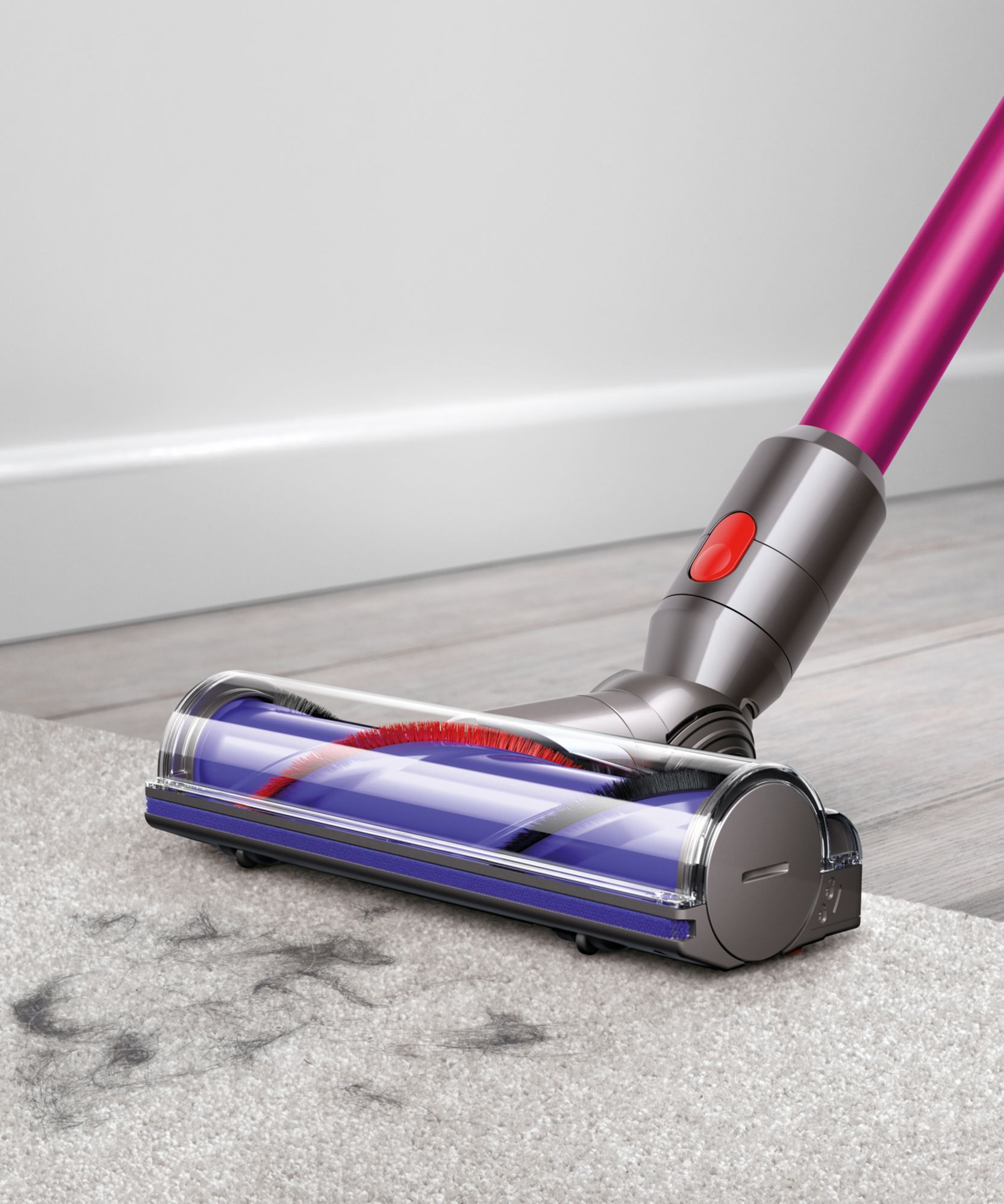 Powered by the Dyson digital motor V7 Engineered for powerful suction on carpets and hard floors Up to 30 minutes of fade-free power in Powerful mode and up to 20 minutes with motorized cleaner-head. Powerful suction for whole-home cleaning No-touch dirt emptying, just pull the lever to release it into the bin. Lightweight and ergonomic, to clean high-up places with one smooth motion Quickly transforms to a handheld vacuum 2 Tier Radial cyclones: 15 small cyclones create strong centrifugal forces, to capture microscopic dirt Crevice tool is designed for precise cleaning around edges and narrow gaps Combination tool: Two tools in one, for simple switching between surfaces Lifetime washable filter Includes combination tool, crevice tool, docking station, wall charger, V7 Motorhead vacuum Warranty: 2 years parts and labor