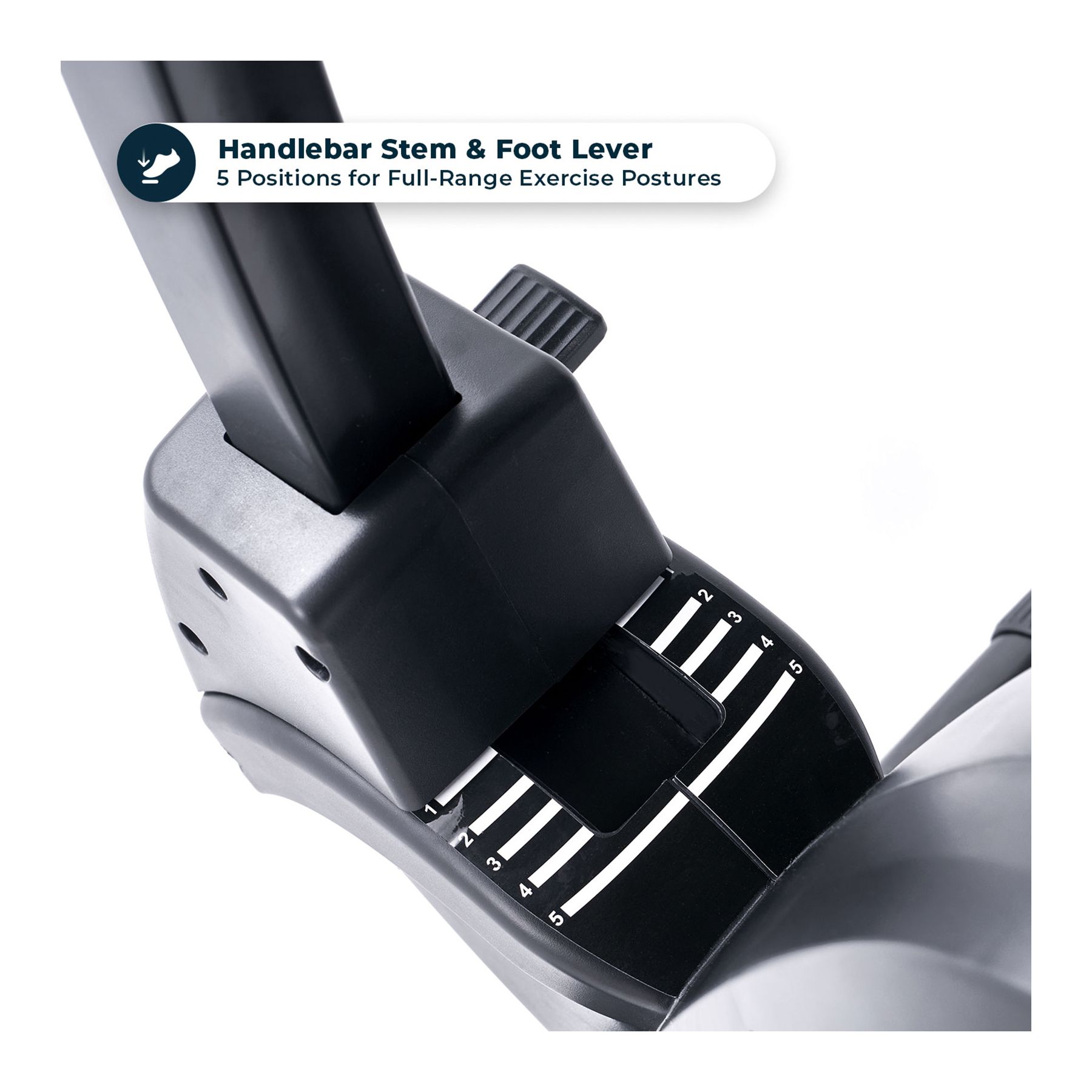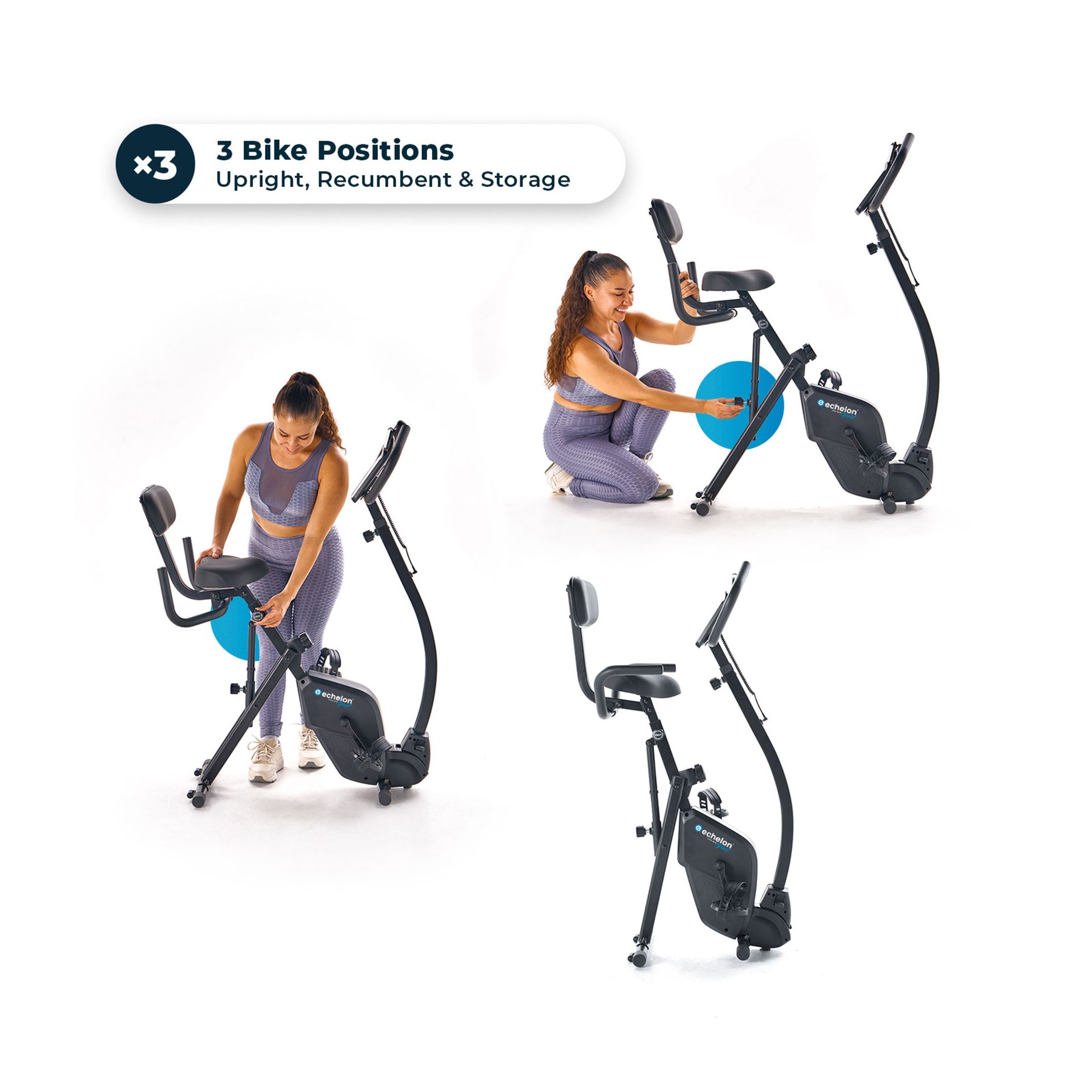Three adjustable seat positions: Recumbent, mid-level, and upright