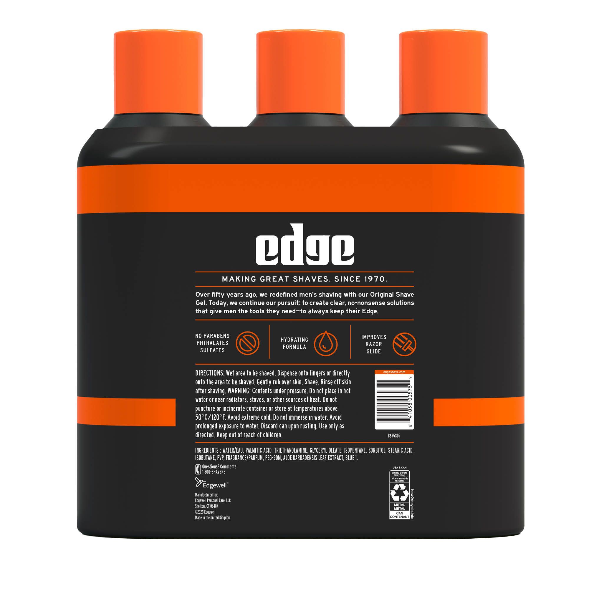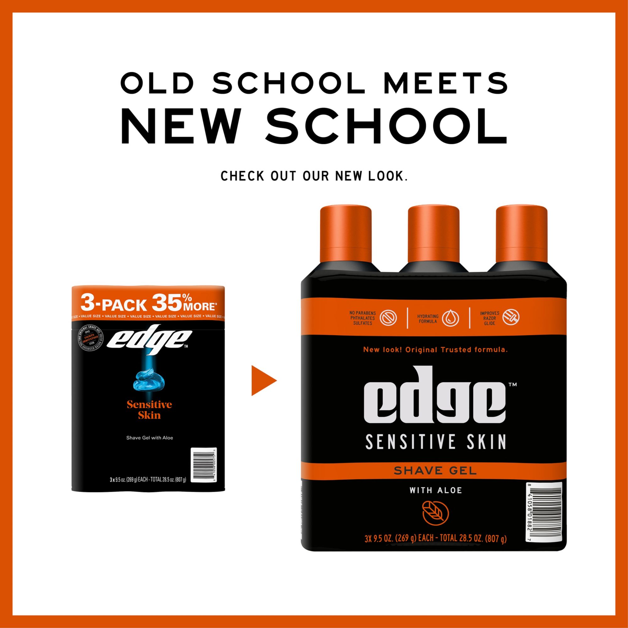 The one that started it all. Edge Original Sensitive Shave Gel contains aloe and lubricants to moisturize and protect as you shave. Edge Advanced Sensitive Skin Extra Moisturizing Shave Gel protects your skin against nicks and cuts. It contains aloe and vitamin E to leave your face smooth and moisturized and cooling conditioners that leave your face feeling refreshed. Plus, it has special moisturizers and lubricants that provide unbeatable razor glide.