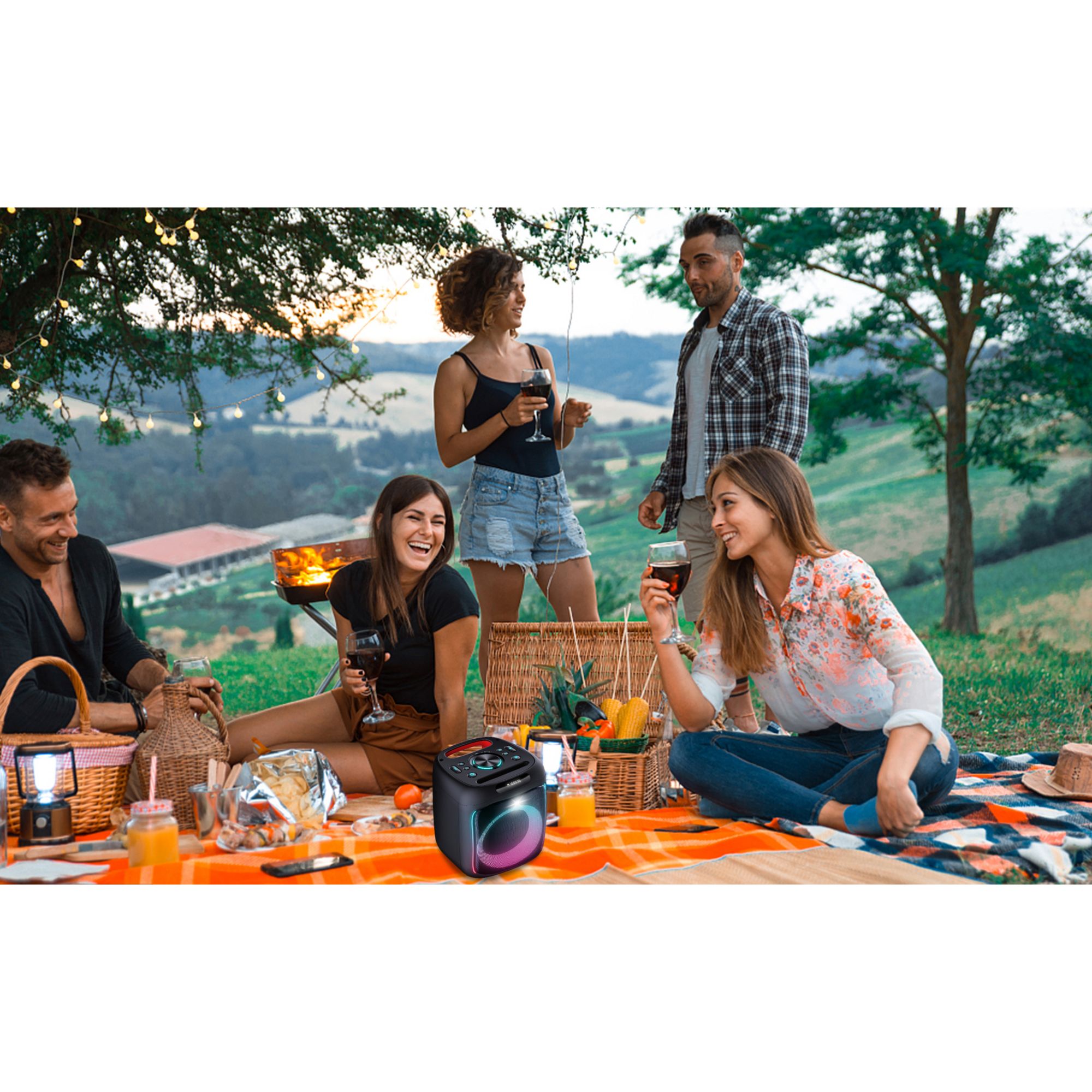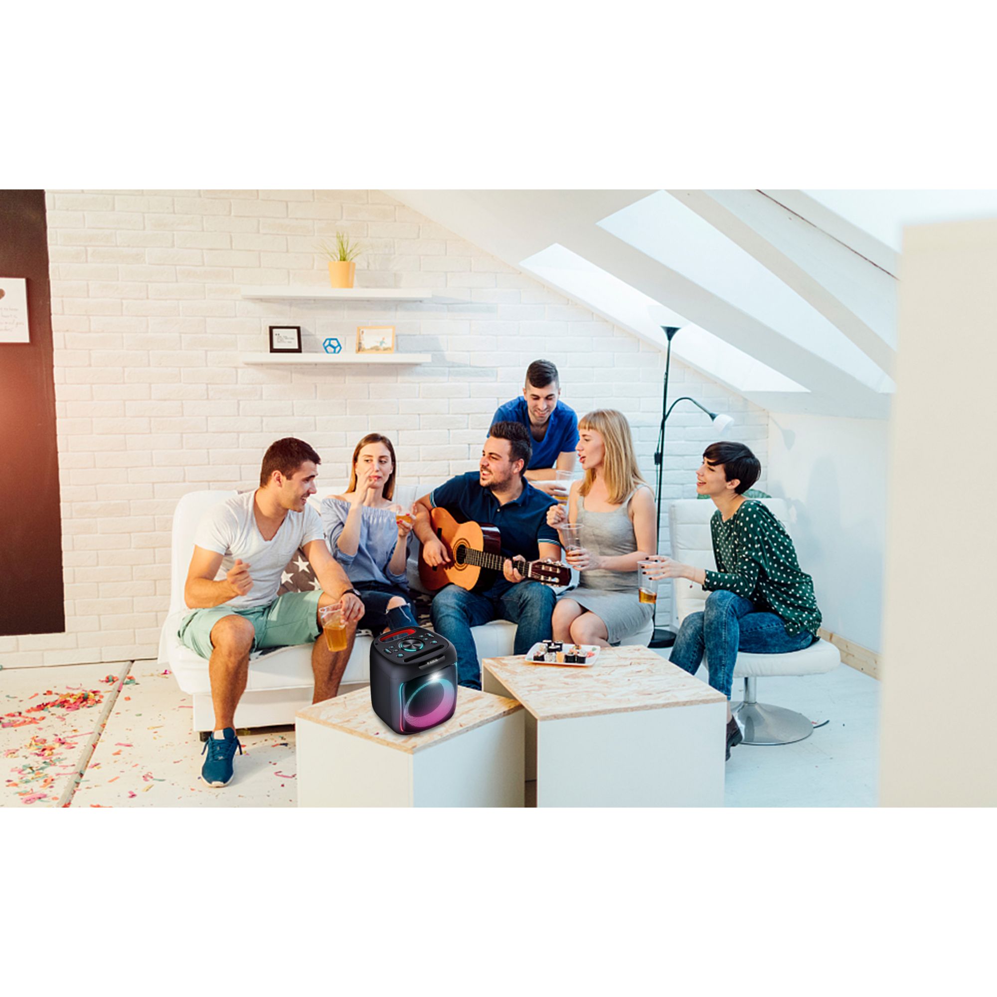 Why settle for a single great party speaker when you can get two? Edison Professional’s new Block Party 2.0 includes two identical Bluetooth speakers packed with features. Each one has a 6.5" woofer and 1.5" tweeter delivering 300W of peak sound output. In addition to supporting audio playback via Bluetooth sources, each can also play audio from USB flash drives, TF cards, FM radio, and a 3.5mm aux input. The Block Party 2.0 speakers can work independently of each other or use the true wireless stereo (TWS) pairing feature to connect them for accurate stereo sound separation with booming bass and soaring highs. Both speakers put on a great light show with colorful LED ring and frame lighting (with multiple settings) and white LED flash lighting. When you're ready for some karaoke, each speaker includes dual 0.25" microphone Inputs (microphones sold separately). You can customize the sound of your tunes with separate bass and treble controls. For parties on the go or outside, the speakers have you covered with long-life 7.4V, 3000mAh rechargeable batteries. An integrated handle also helps carry the Block Party with you. With these features, it's always party time - so start a Block Party today!