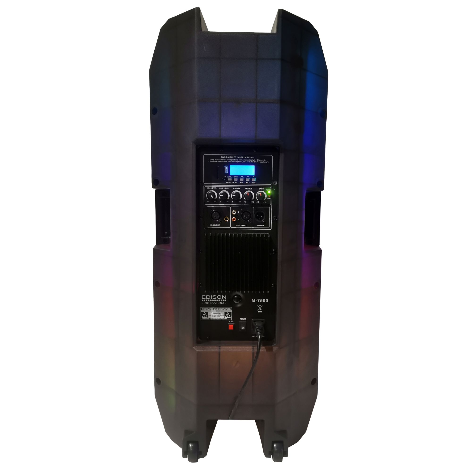 Edison Professional M7600 Dragonfly Translucent Bluetooth Party System with Dual 15" Speakers & LED Lighting