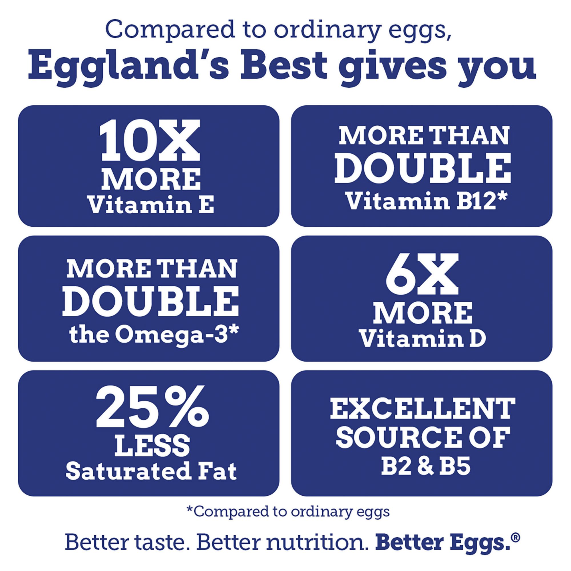 Boost your vitamin intake with 6x more Vitamin D and 10x more Vitamin E vs. ordinary eggs