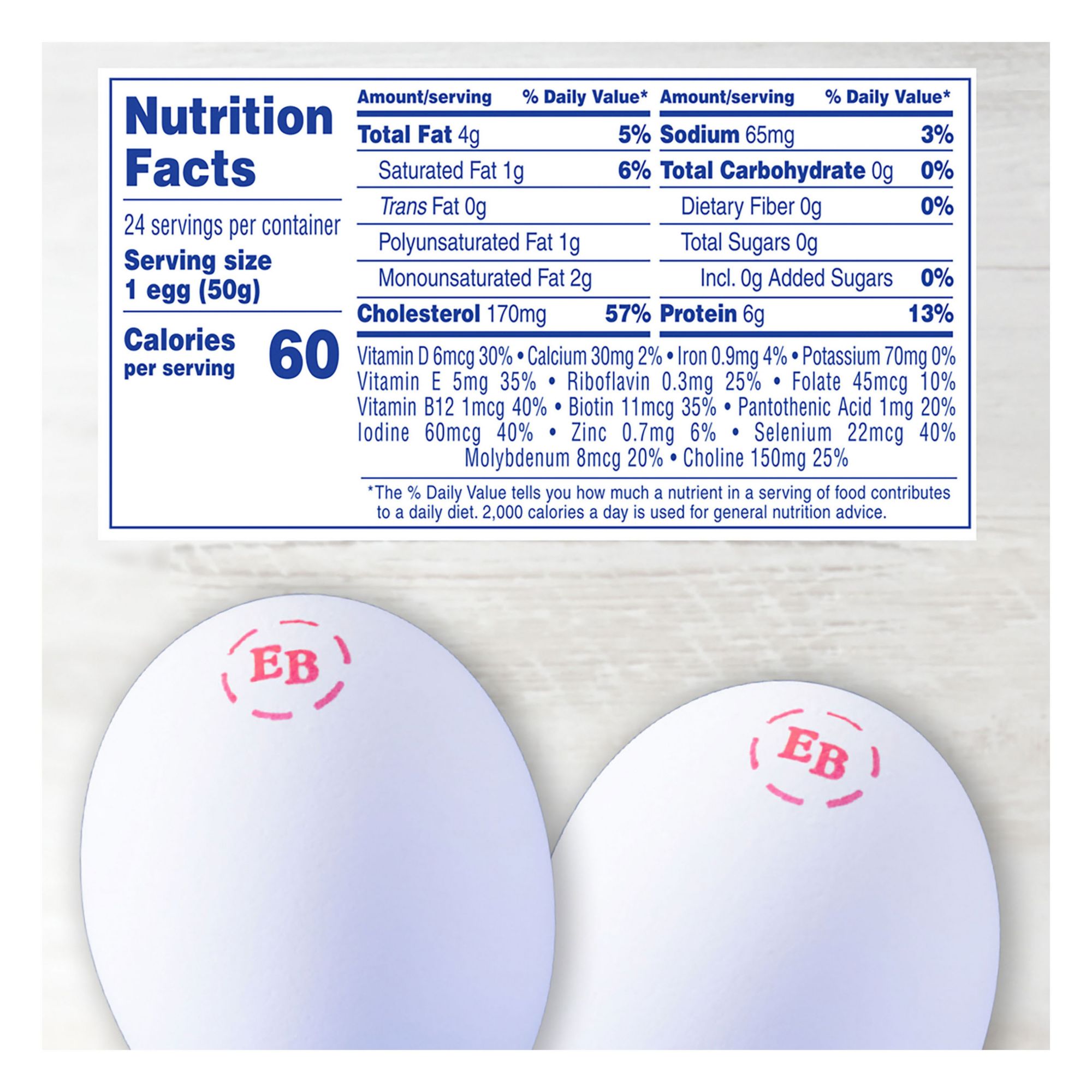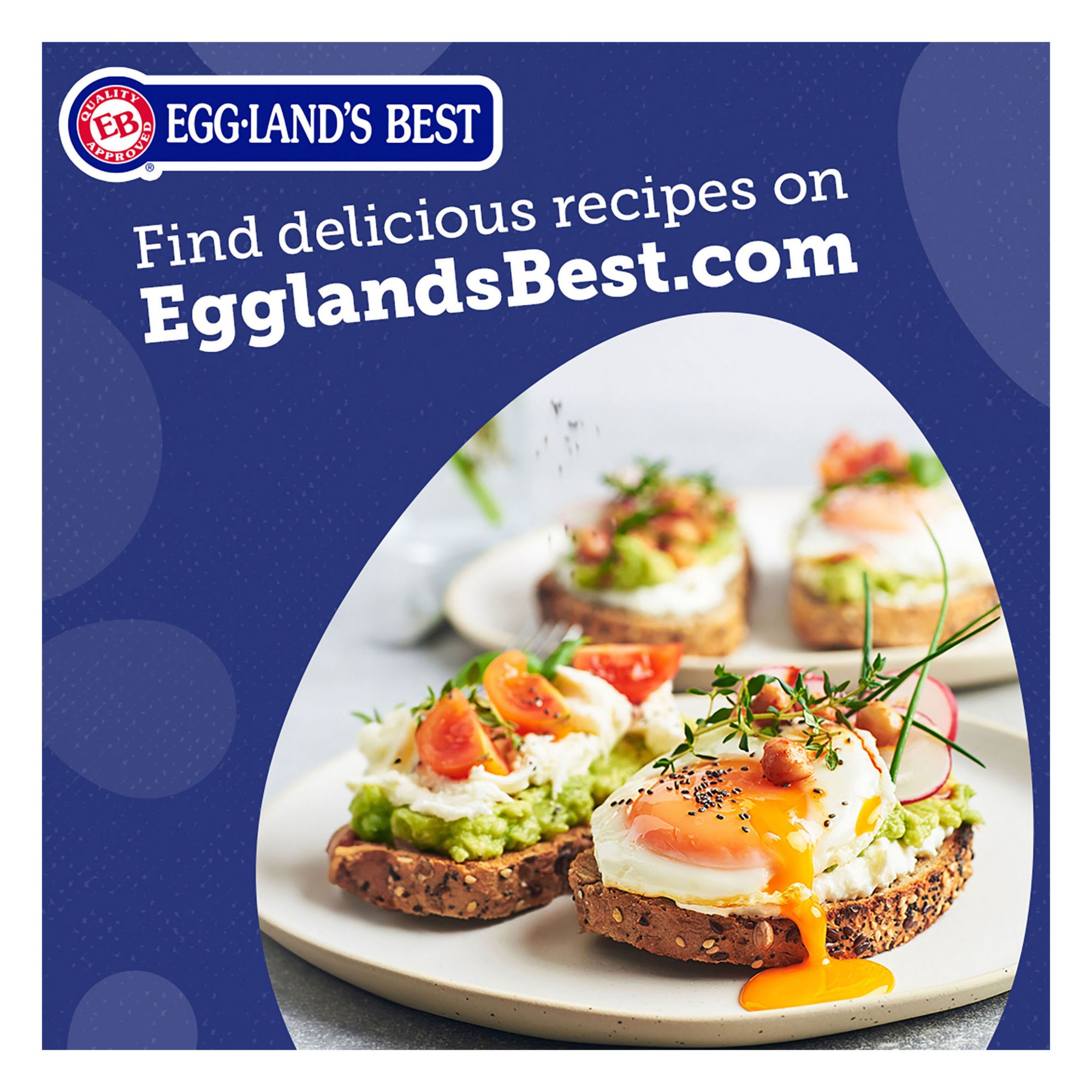Better taste. Better nutrition. Better eggs. Every plate made with Egglands Best Cage Free eggs is full of superior taste and packed with protein, multi-vitamins, and minerals, so you can treat yourself any time — and feel good about it every time! Egglands Best does things differently — right from the start. Our highly ethical and humane approach to eggs includes feeding our hens an all-vegetarian diet with no animal by-products, recycled or processed foods, or hormones, steroids or antibiotics of any kind. Our cage free hens are free to roam in a specially selected environment that has sunlight, shade, shelter, an exercise area, and plenty of fresh air. We make sure our hens enjoy a special diet so that our eggs can fit your nutritious diet. We conduct more than 75,000 health purpose driven tests each year and created the most rigorous egg quality assurance program in the industry, while the distinctive “EB” stamp on the shell promises the highest production and safety standards. With each bite of a hearty omelet, egg sandwich, or your favorite baked good made with Egglands Best award-winning eggs, you can taste the difference and feel the benefits all day long. Egglands Best eggs are proven to stay fresher for longer than ordinary eggs, making them the perfect ingredient in countless recipes, a great on-the-go snack, or a hearty, nutrition-filled meal. Packaging may vary.