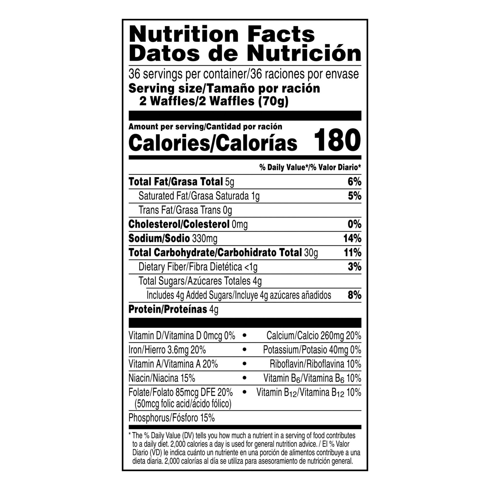 Wake up and greet the day with the feel-good taste of Kellogg's Eggo Homestyle Waffles. Crafted with delicious ingredients and cooked on griddles and irons just like in the home kitchen, our waffles are a perfect balance of crispy, fluffy goodness. Pop these frozen waffles in the toaster or oven for a delightfully crisp texture and the familiar, inviting taste of homemade waffles. These satisfying frozen waffles are made with pantry-perfect staples and every serving provides a good source of 9 essential vitamins and minerals. Conveniently packaged and easy to prepare, Kellogg's Eggo Homestyle Waffles help bring warmth and smiles to fast-paced, busy mornings where getting a bite to eat may otherwise be a challenge. Great for families and individuals alike, these delicious waffles are made to enjoy as a stand-alone breakfast treat or with your favorite morning toppings such as butter and syrup, jellies and preserves, and whipped cream. So delicious you can't just L'Eggo!
