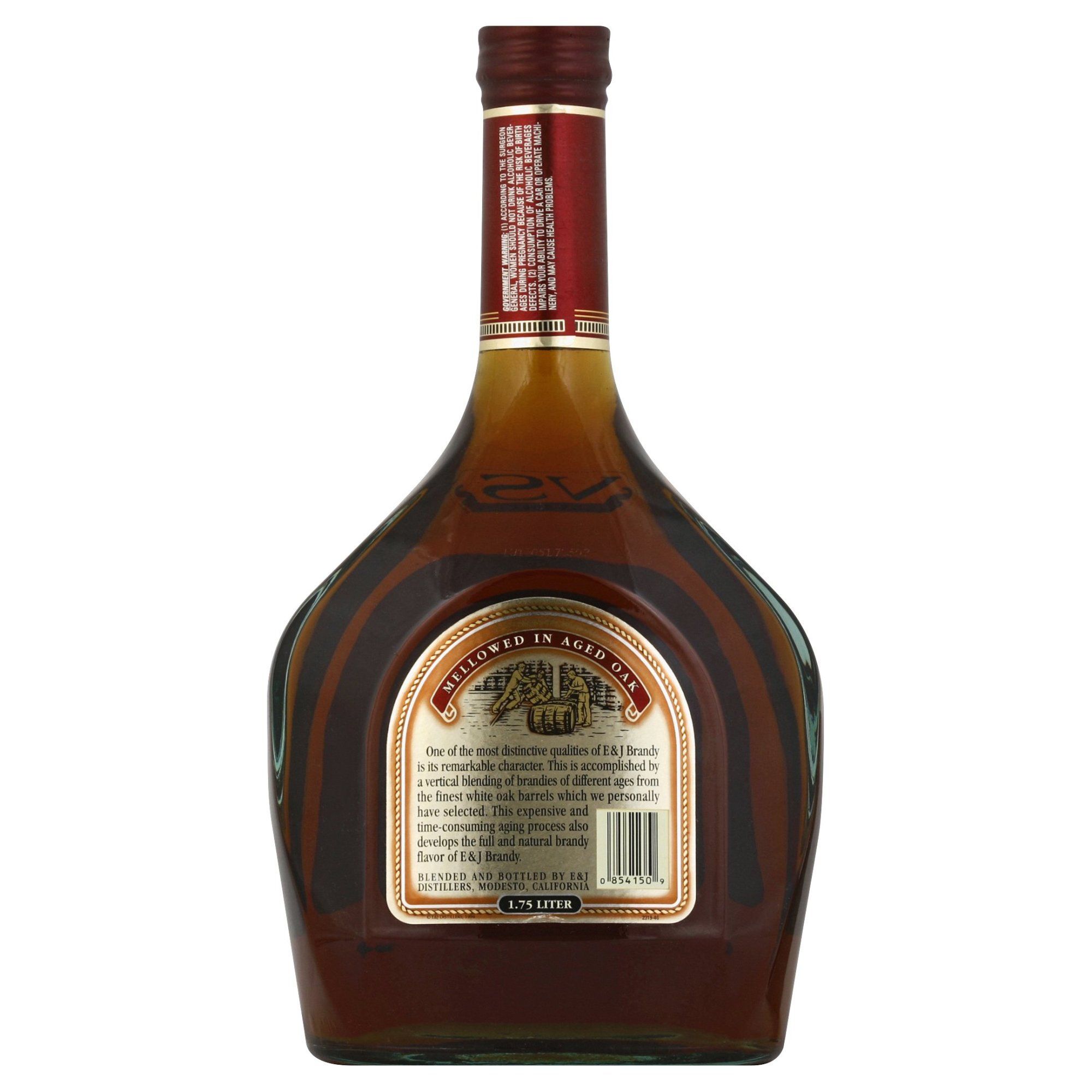 E&J Brandy is America's most awarded brandy. Layers of apple and toasted oak with hints of vanilla and spice round out the flavor and linger in the aftertaste. E&J VS brandy is smooth enough to drink straight or in a variety of mixed drinks. If you are looking for simple cocktails, this brandy mixes perfectly with ginger ale, club soda or cola. Our experience of making brandy since 1938 has allowed us to perfect our craft and bring the best brandy to market. We distill only the finest wine into brandy and age it for at least two years in American oak barrels. This larger 1.75 L bottle of E&J VS Brandy is ideal for parties and entertaining.