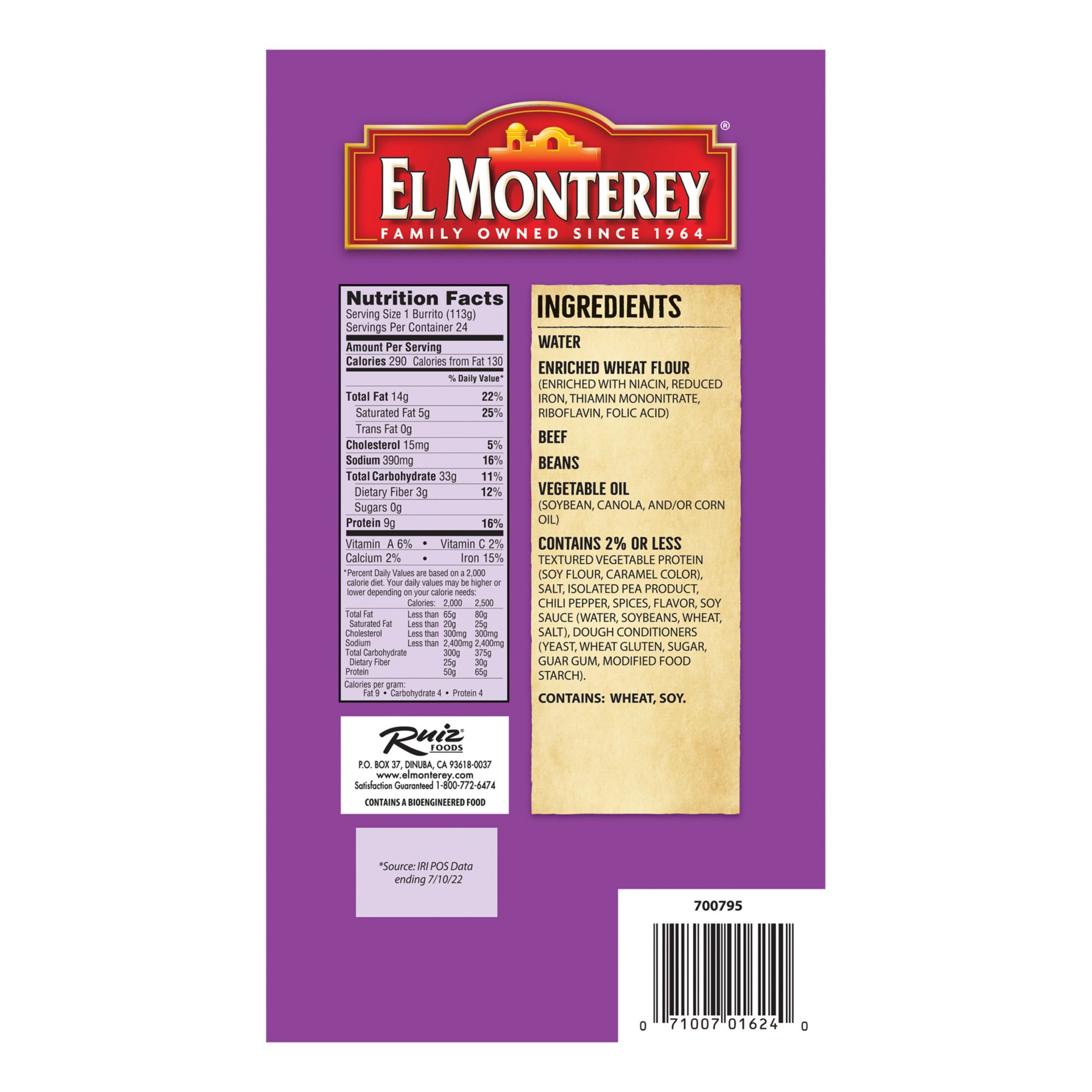 El Monterey Beef and Bean Burritos, Microwavable, 24 ct.