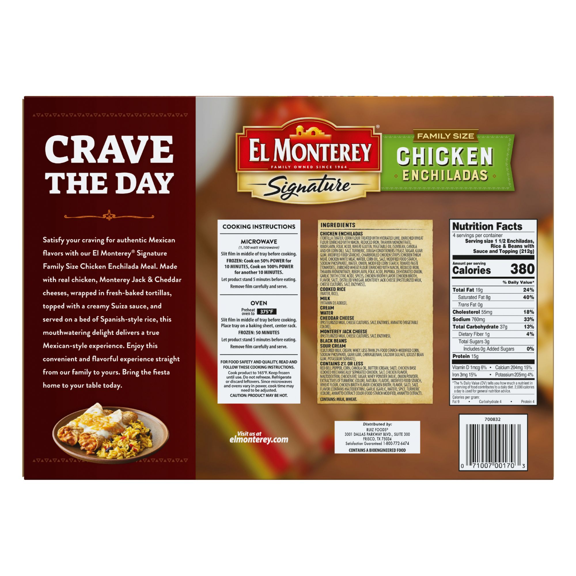 El Monterey Chicken Enchilada Family Size Meal, Serves 4 People, 1.875 lbs.