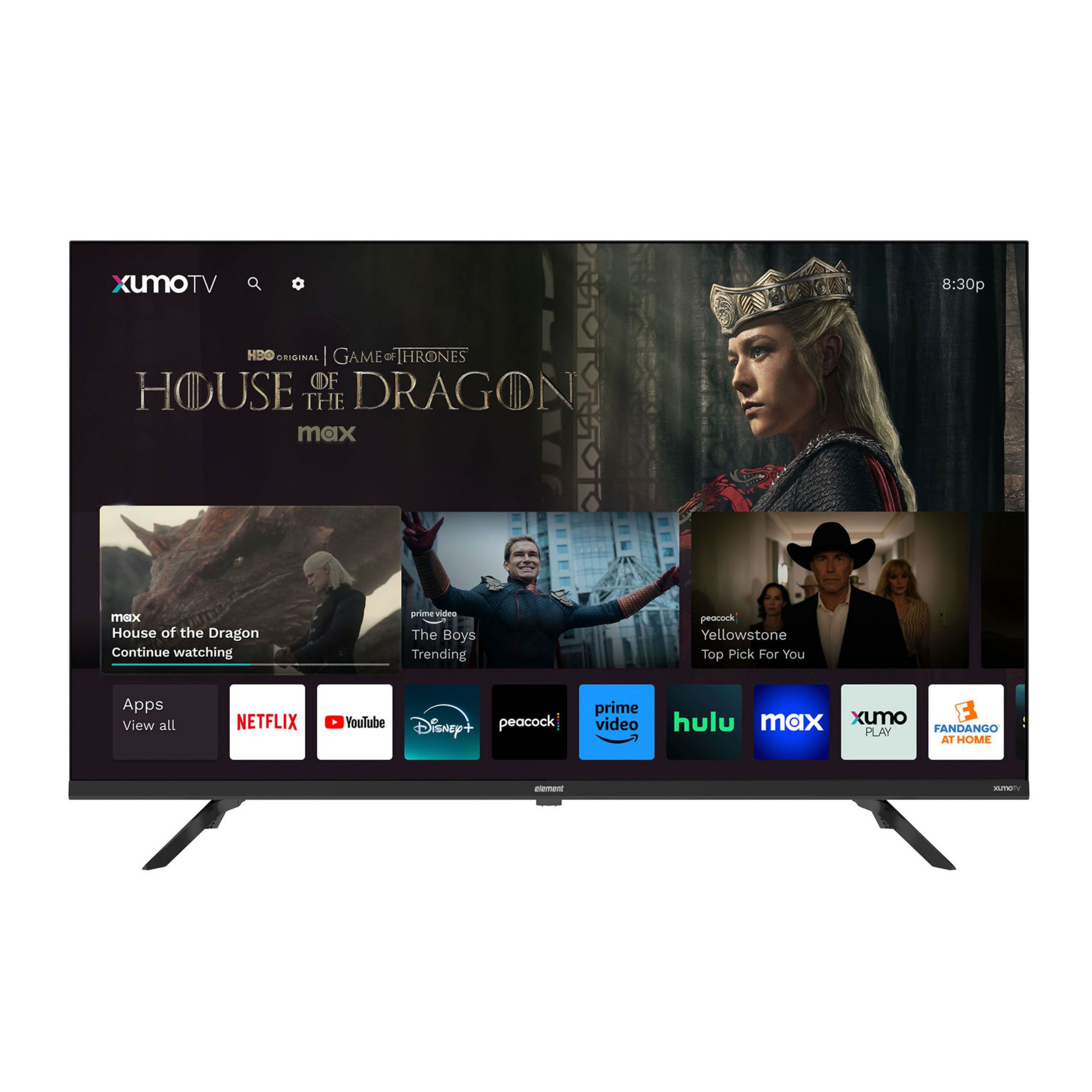 Experience breathtaking picture quality with Element 43" Xumo TV. With its 4K Ultra HD resolution, you'll enjoy a stunningly clear and detailed image that brings your favorite movies, TV shows, and video games to life. Plus, Dolby Vision and HDR technology provide enhanced color and contrast for an even more immersive viewing experience – even in the darkest of scenes. Dolby Audio delivers superior sound for immersive movie watching and gaming. And with a 120Hz effective refresh rate, you'll never miss a moment of the action, even during fast scenes. Enjoy smoother motion and sharp visuals while playing video games or watching fast-moving shows and movies. Designed to help you stream easily. The built-in smart Xumo TV experience combines over 250 apps pre-loaded on your 43" TV in one simple view. Stream thousands of movies, TV shows, and music from Netflix, YouTube, Disney+, Prime Video, Peacock, and hundreds more. Explore over 750 free live channels featuring local & national news, sports, kid’s programming, and an endless on-demand library from Xumo Play, Tubi, Pluto TV, and more. Wi-Fi connectivity makes accessing the best content quick and easy. Easily mirror your smartphone on your TV to play videos, music, photos, and more. With Apple AirPlay and Home support, stream movies, and TV shows, mirror your pictures and personal videos, and control your TV — right from your iPhone, iPad, or Mac. And with Bluetooth built-in, you can easily pair your television with compatible Bluetooth devices, such as speakers, headphones, game controllers, laptops, and more. Instantly watch live TV, discover new and popular shows and movies, launch your go-to apps, or continue watching from where you left off, right from your personalized home screen. Search across hundreds of apps at once or use the included voice remote to search with just your voice. Curate a personal watchlist of movies and shows from hundreds of different apps all in one place with My List.